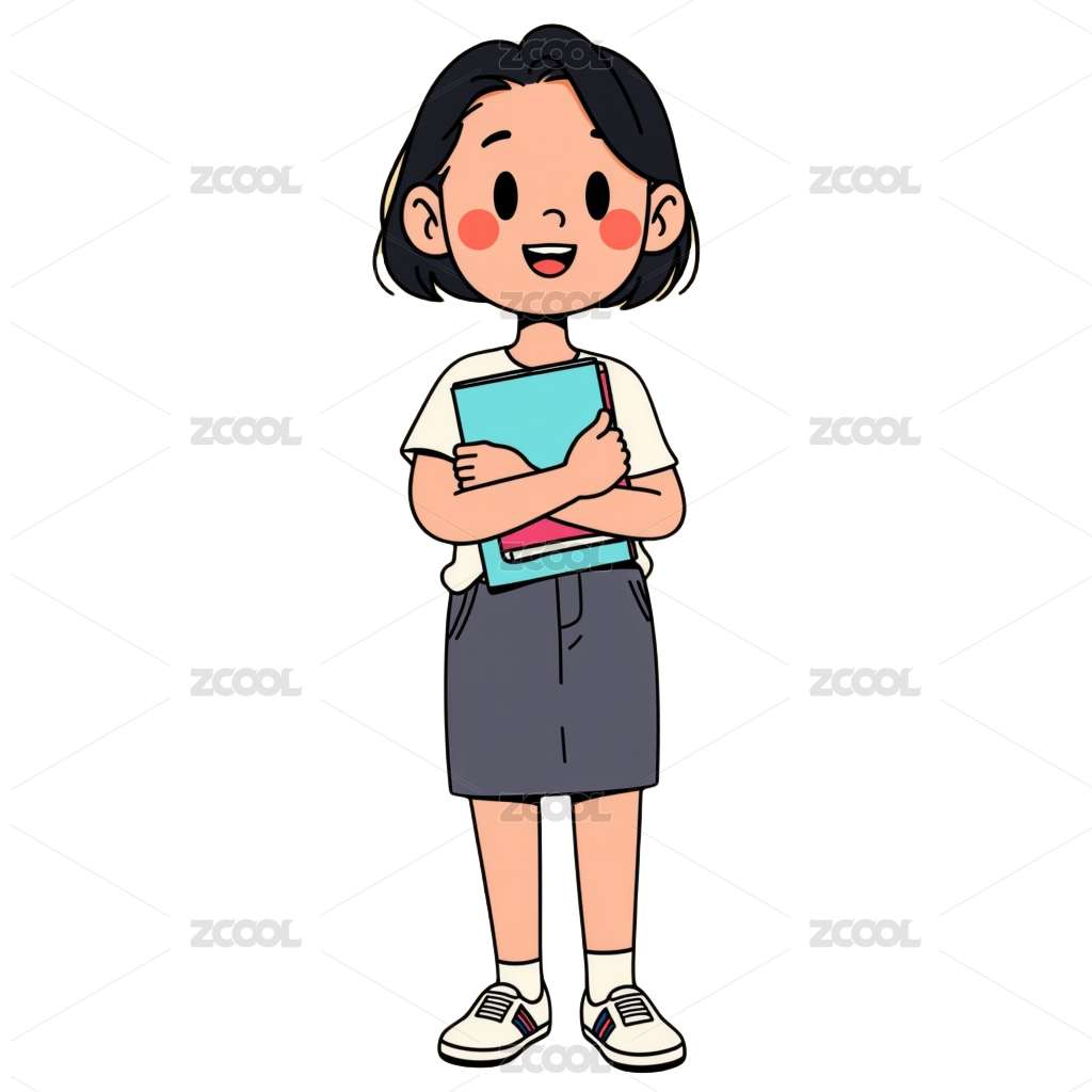 女孩,鞋子,姿态,短发,微笑,日常,站立,背带裤,短袖,双手