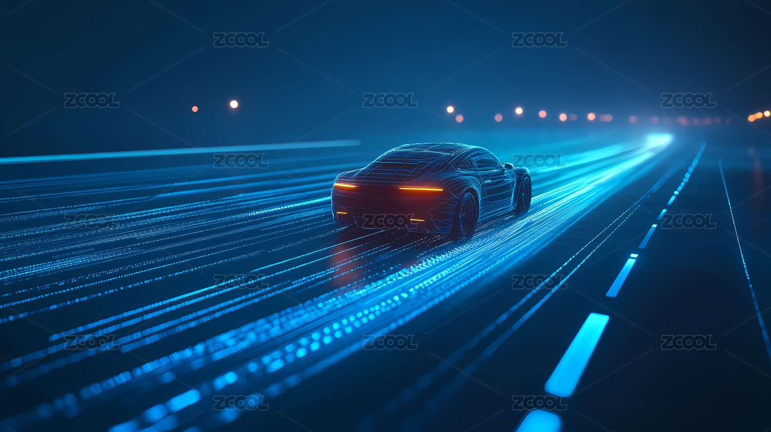 科技汽车卡车飞机轮船交通工具蓝色线条概念