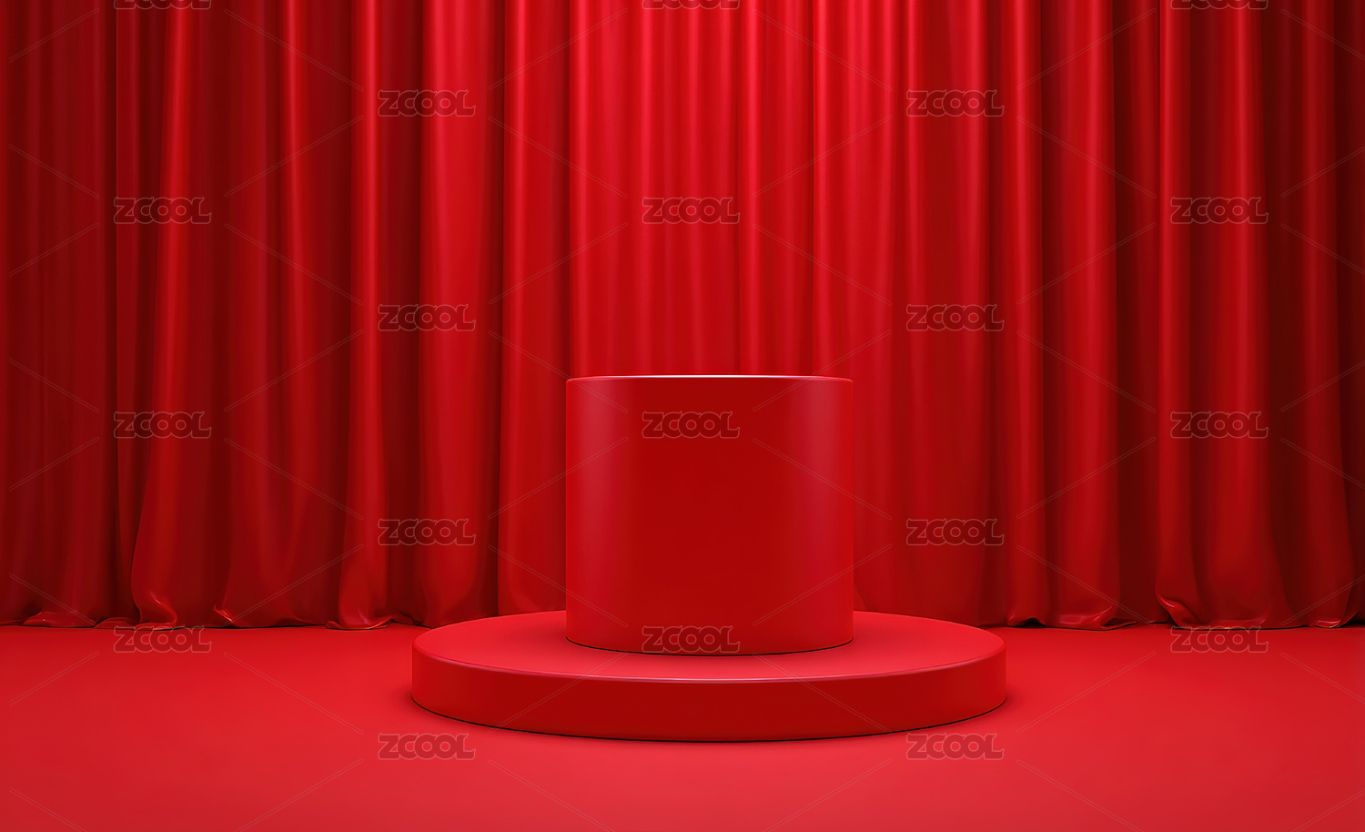 深红色帷幕下的简约圆柱展示台