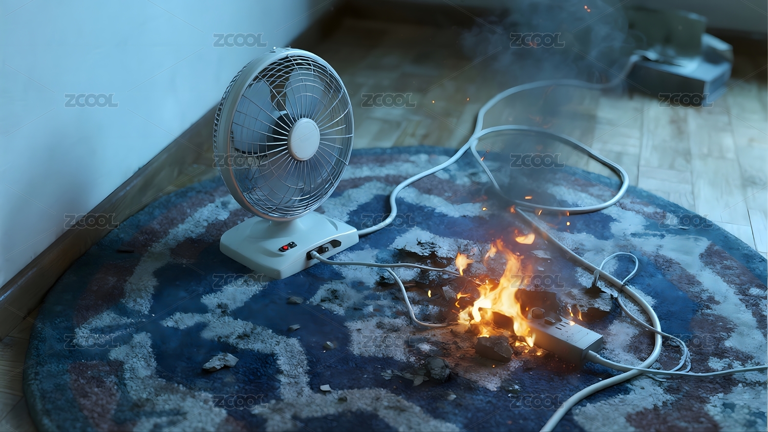 火焰,室内,危险,燃烧,烟雾,金属,风扇,损坏,电子设备,技术故障