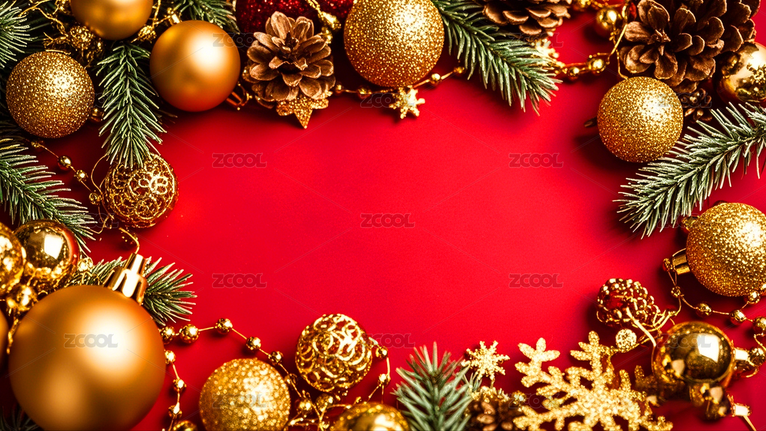 节日红金装饰配松枝