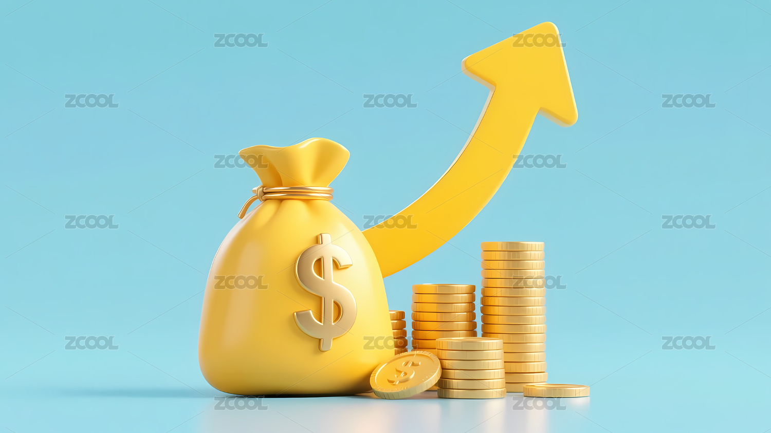 背景,主体,金色,金币,财富,箭头,增长,百分号,钱袋,浅灰色