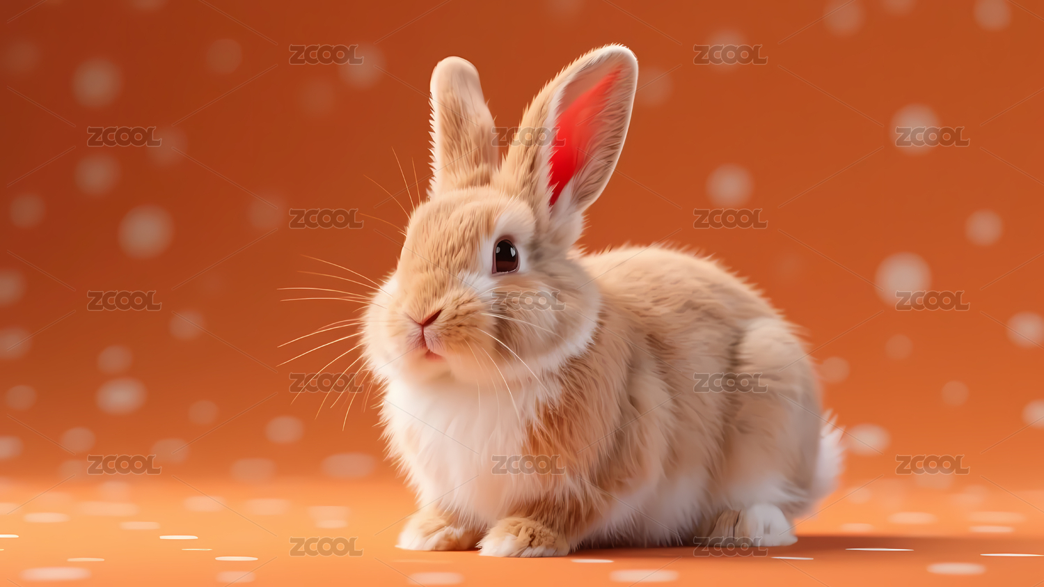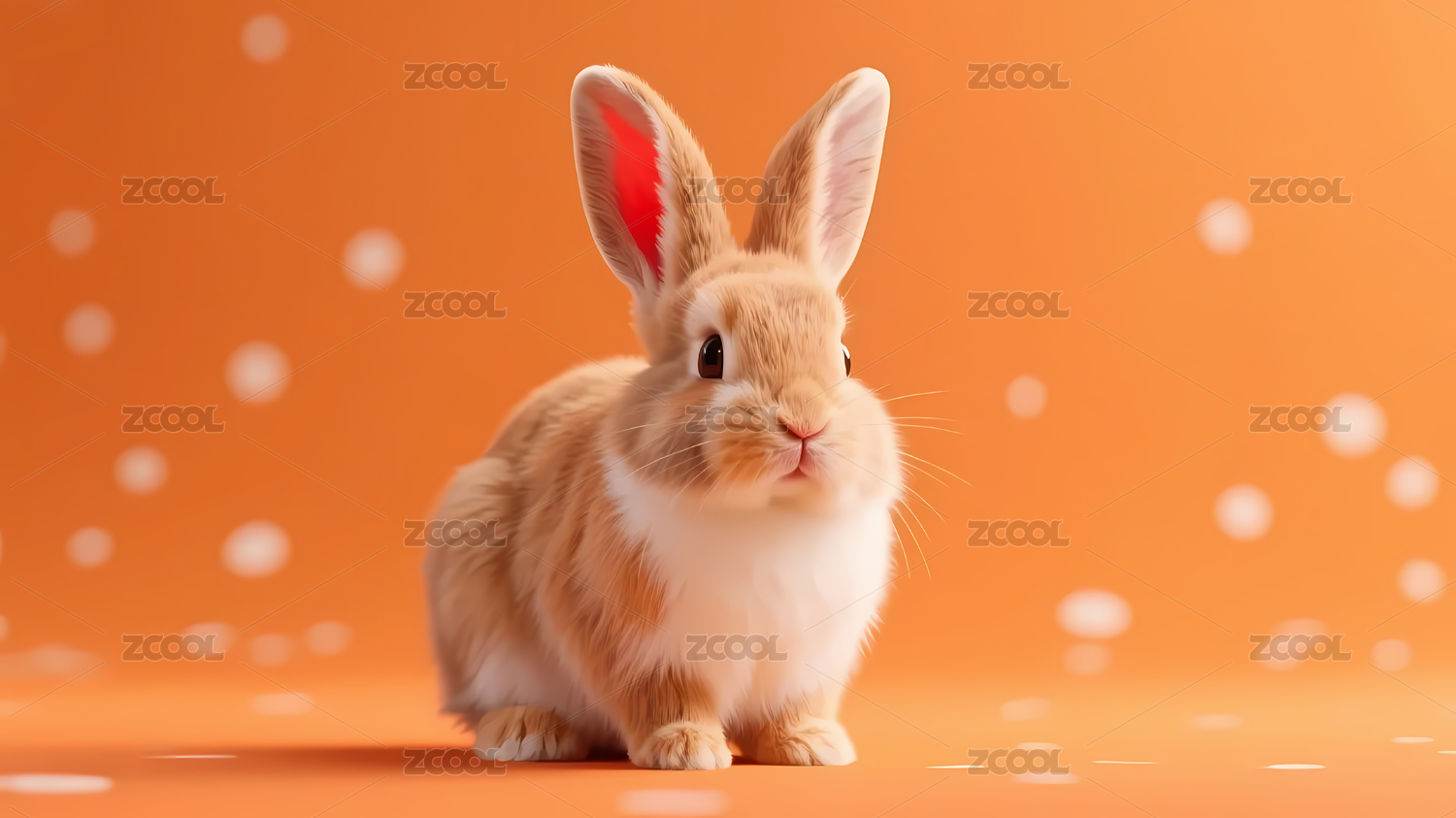 可爱兔子与橙色波点背景