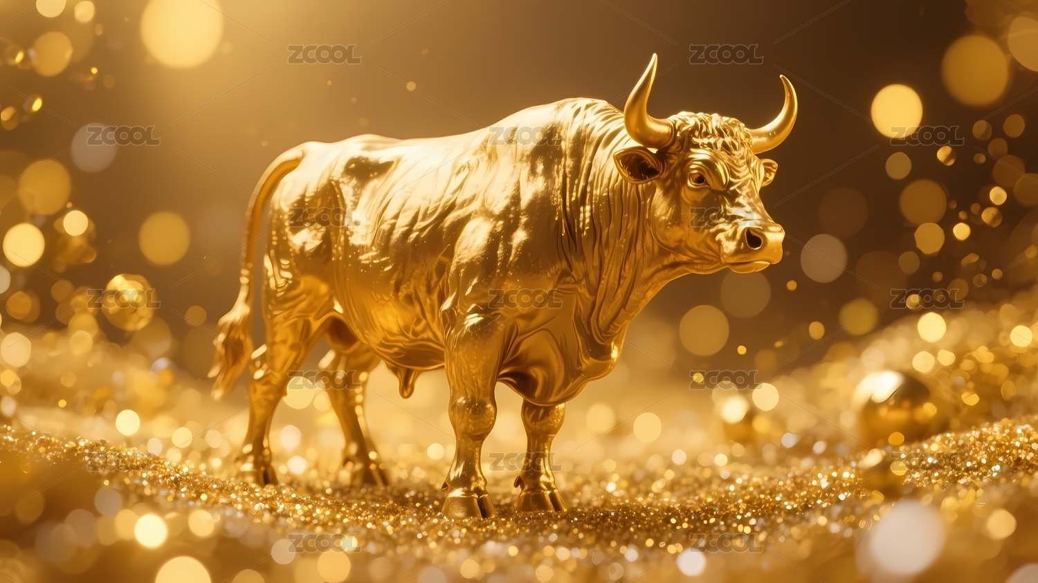 背景,模糊,金色,装饰,光斑,动物,牛,雕像,奢华,富有