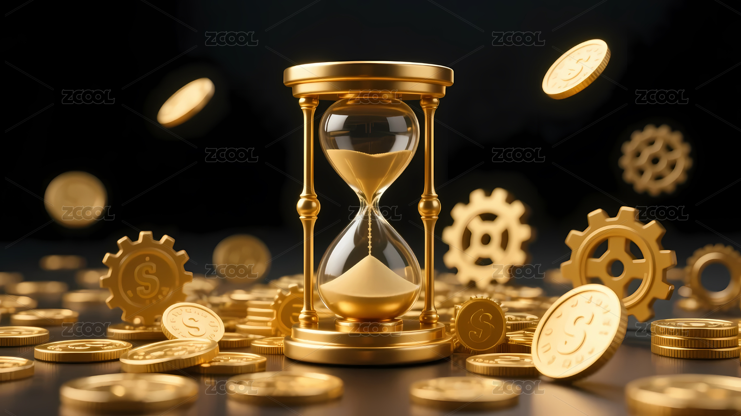 金色齿轮金币沙漏深色背景