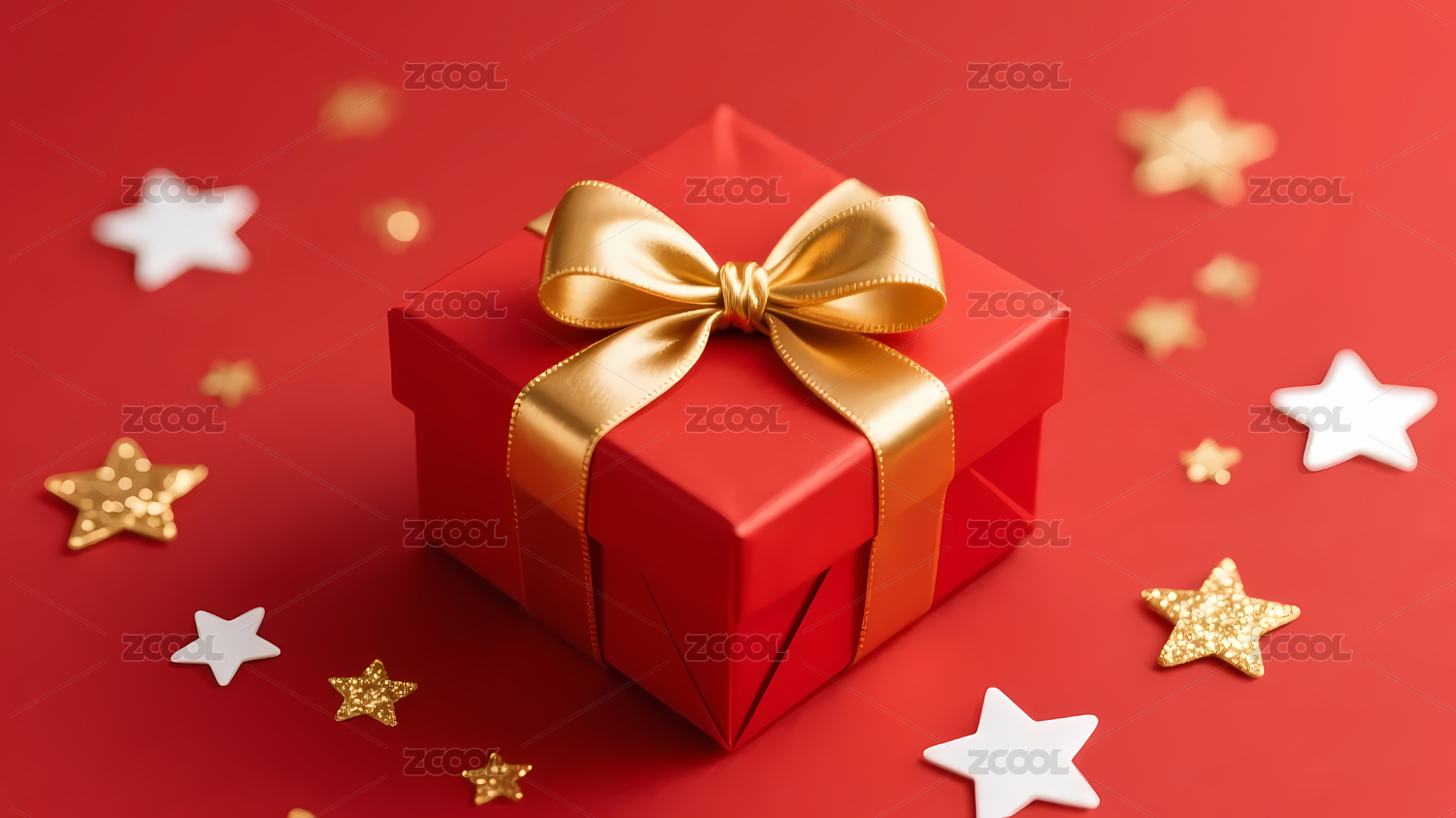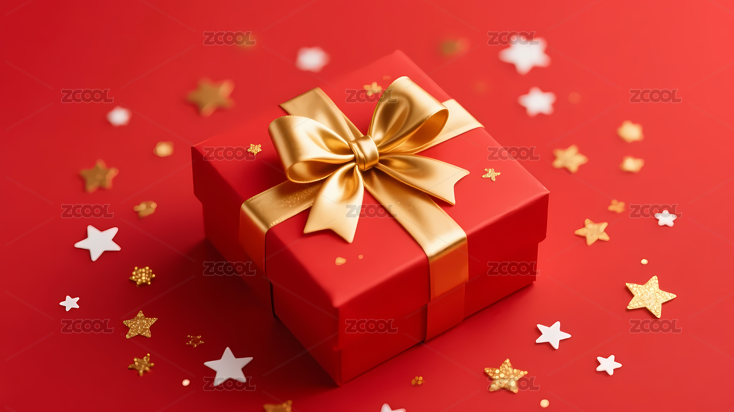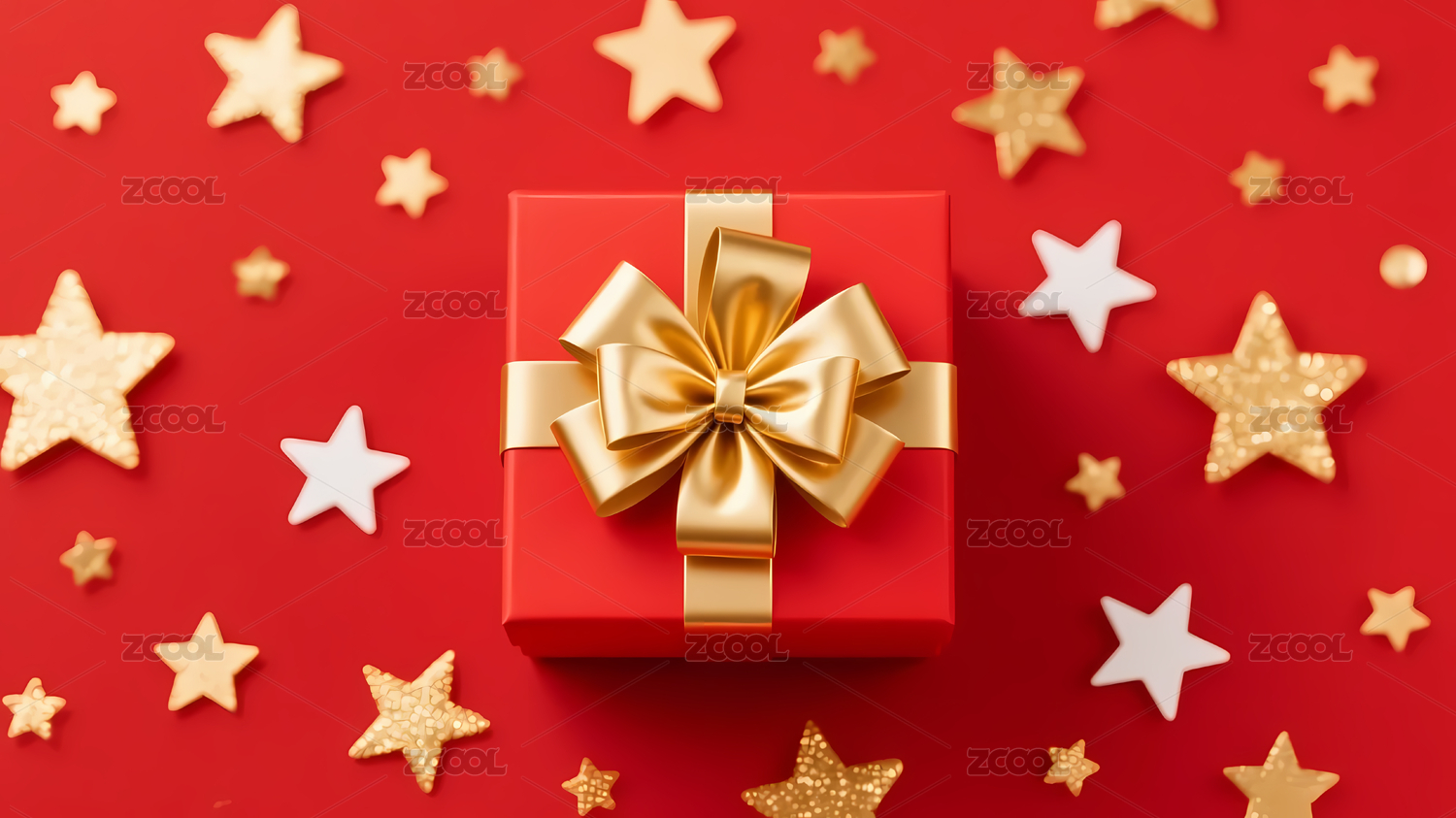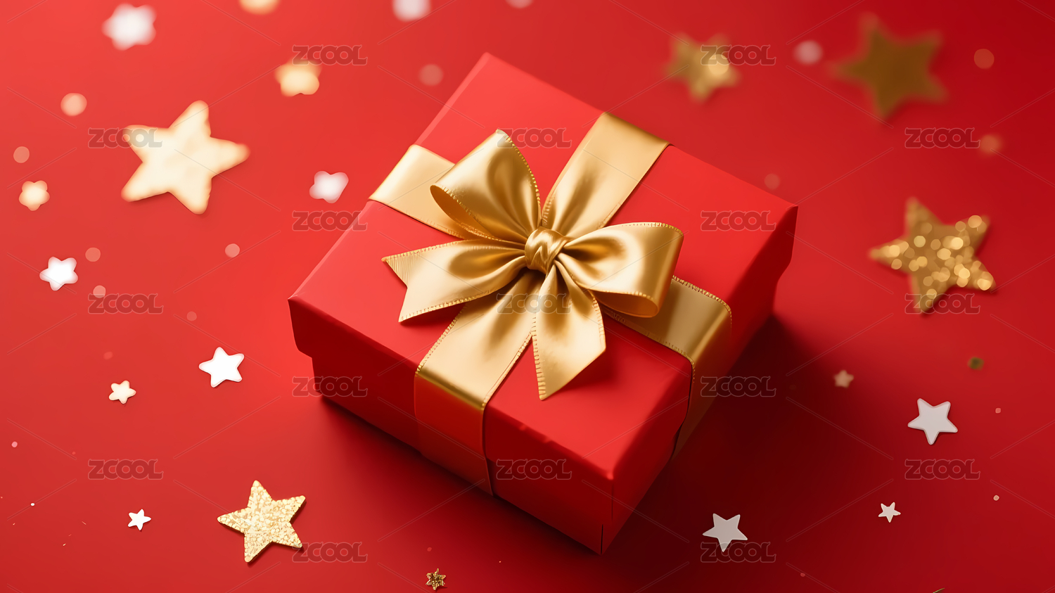 红色礼物盒金蝴蝶结星星