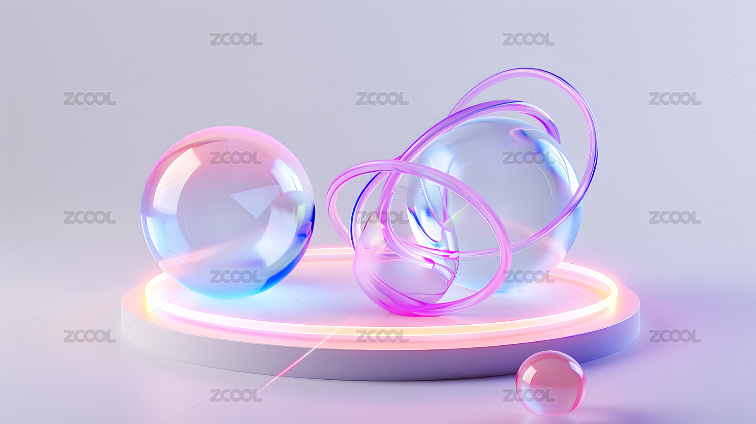 三维彩色圆形透明渐变曲面玻璃背景3D渲染