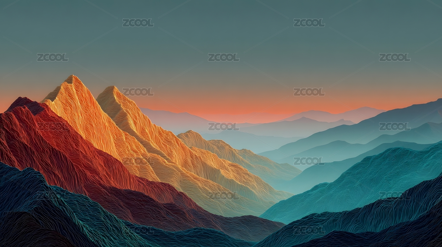 3D渲染山丘山脉高山大山山峰数字艺术插画