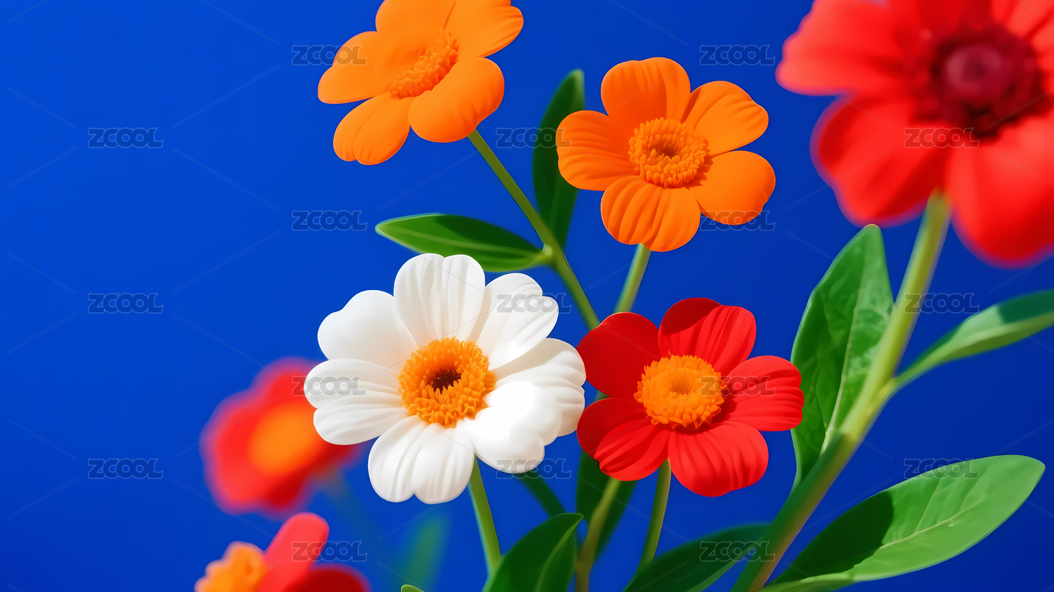 黄色,花朵,背景,深蓝,橙色,白色,小花,点缀,绽放,周围