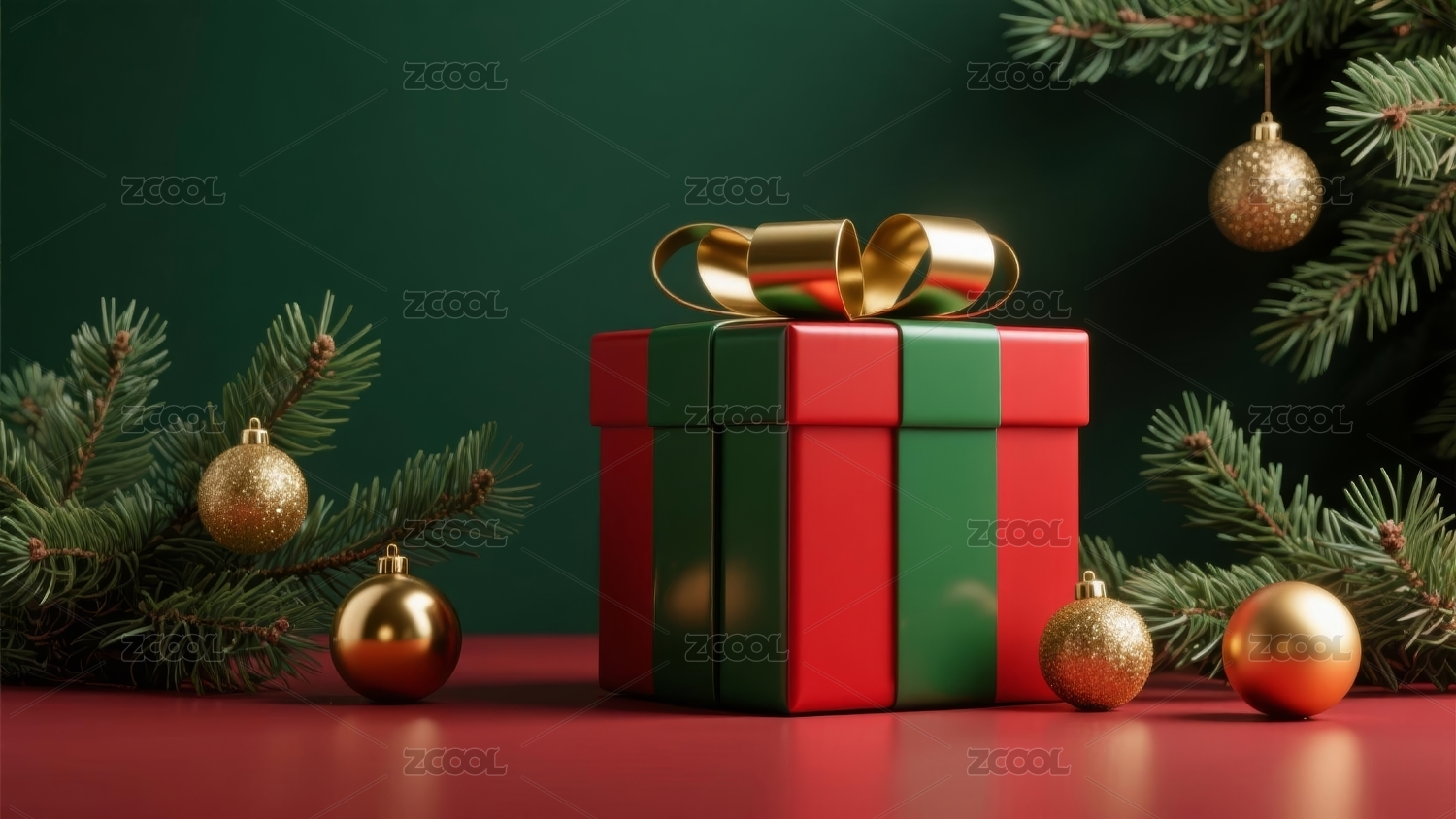 红色礼盒与金色装饰球