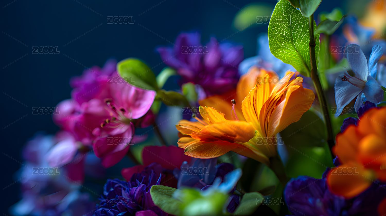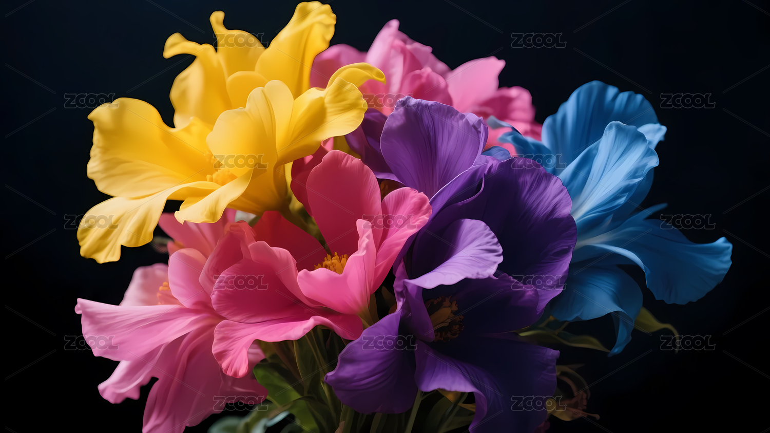 多色花朵深色背景
