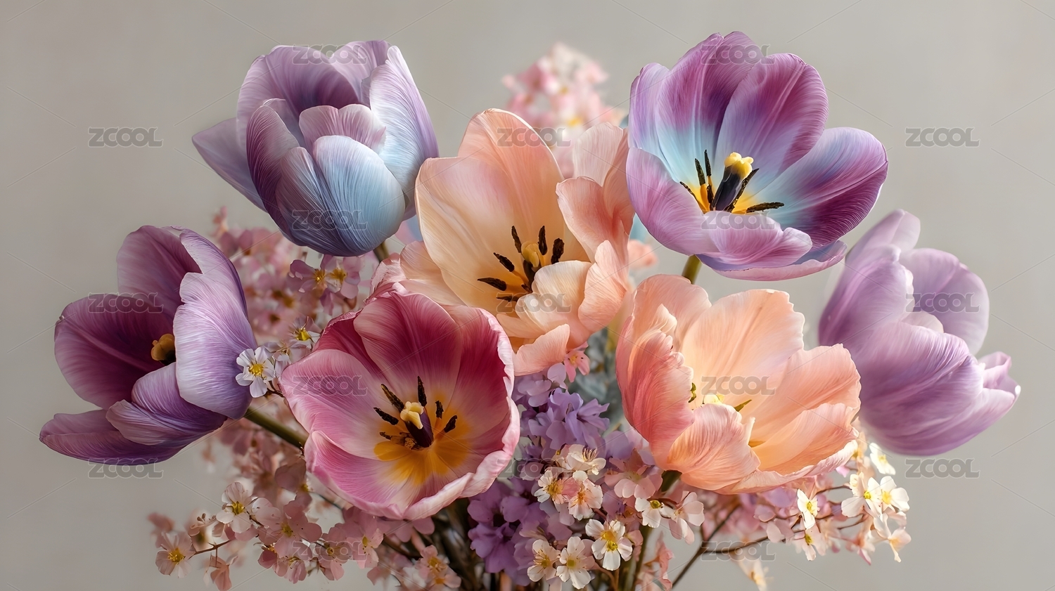 紫粉花束浅色背景