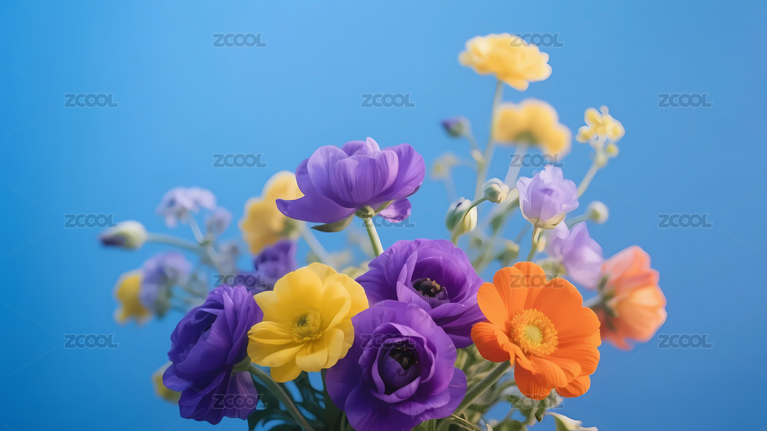彩色花朵与蓝色背景