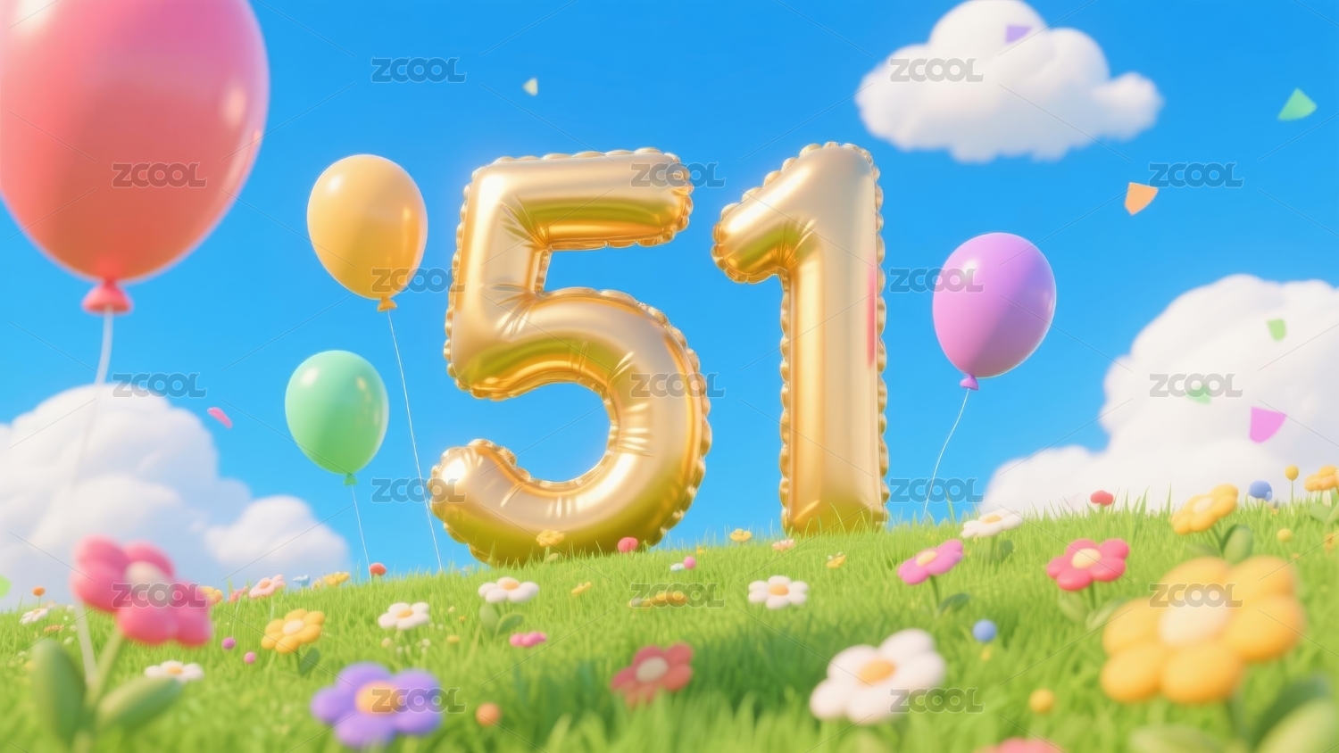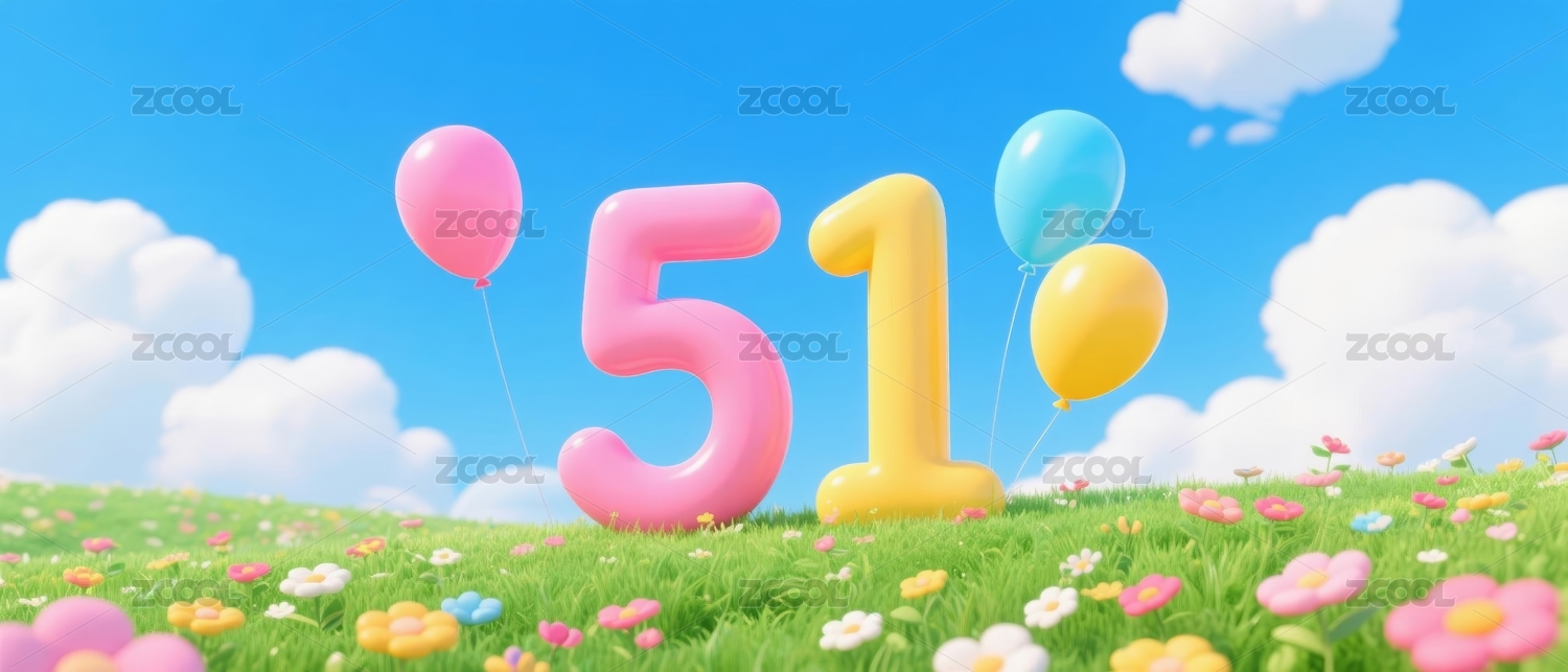 主视觉,商业,五一,节日,庆祝,场景,数字,气球,彩色,草坪