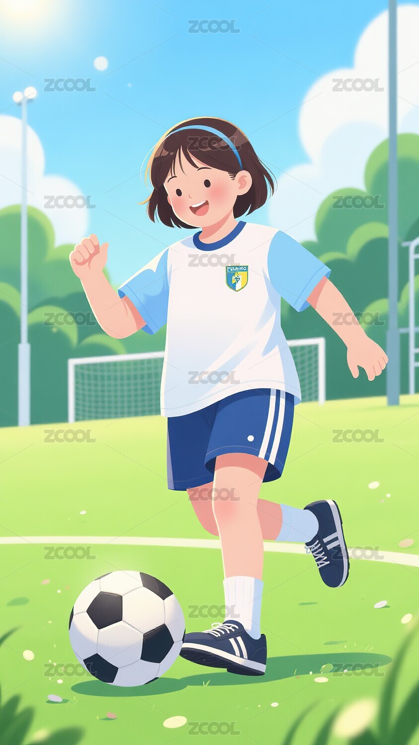 扁平风踢球女孩