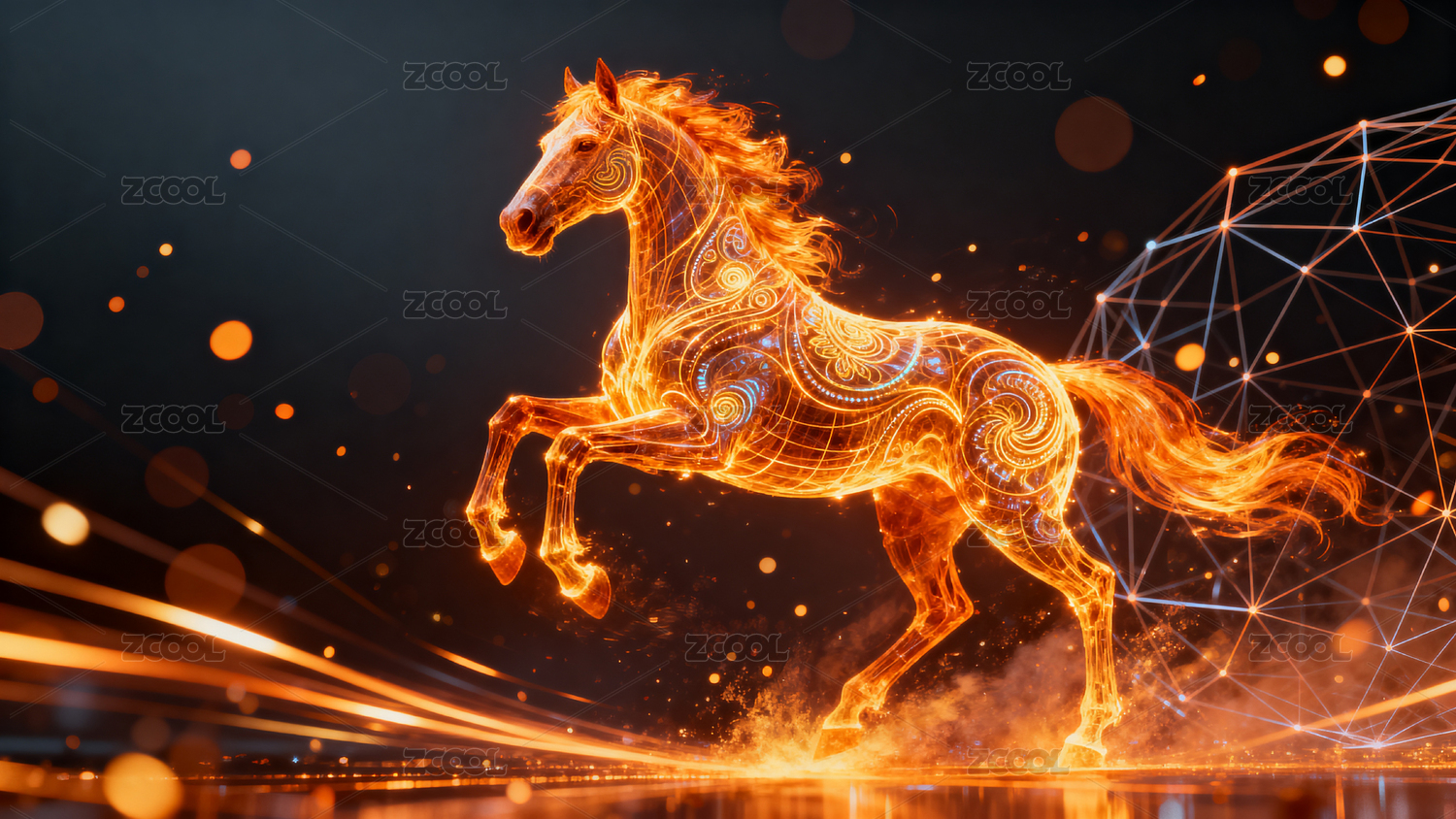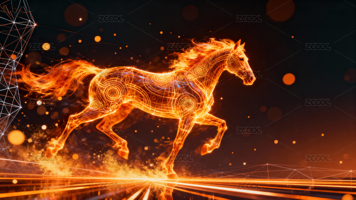 马年主题背景科技感奔跑的骏马