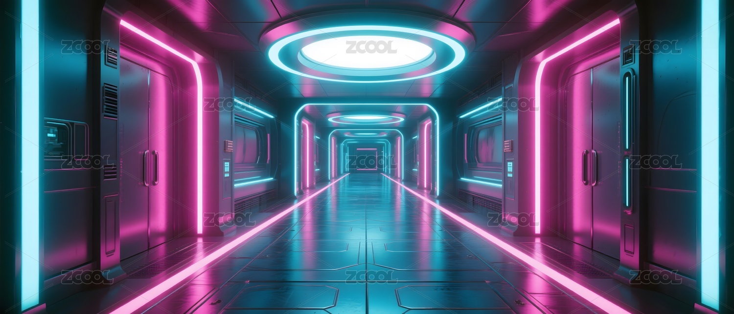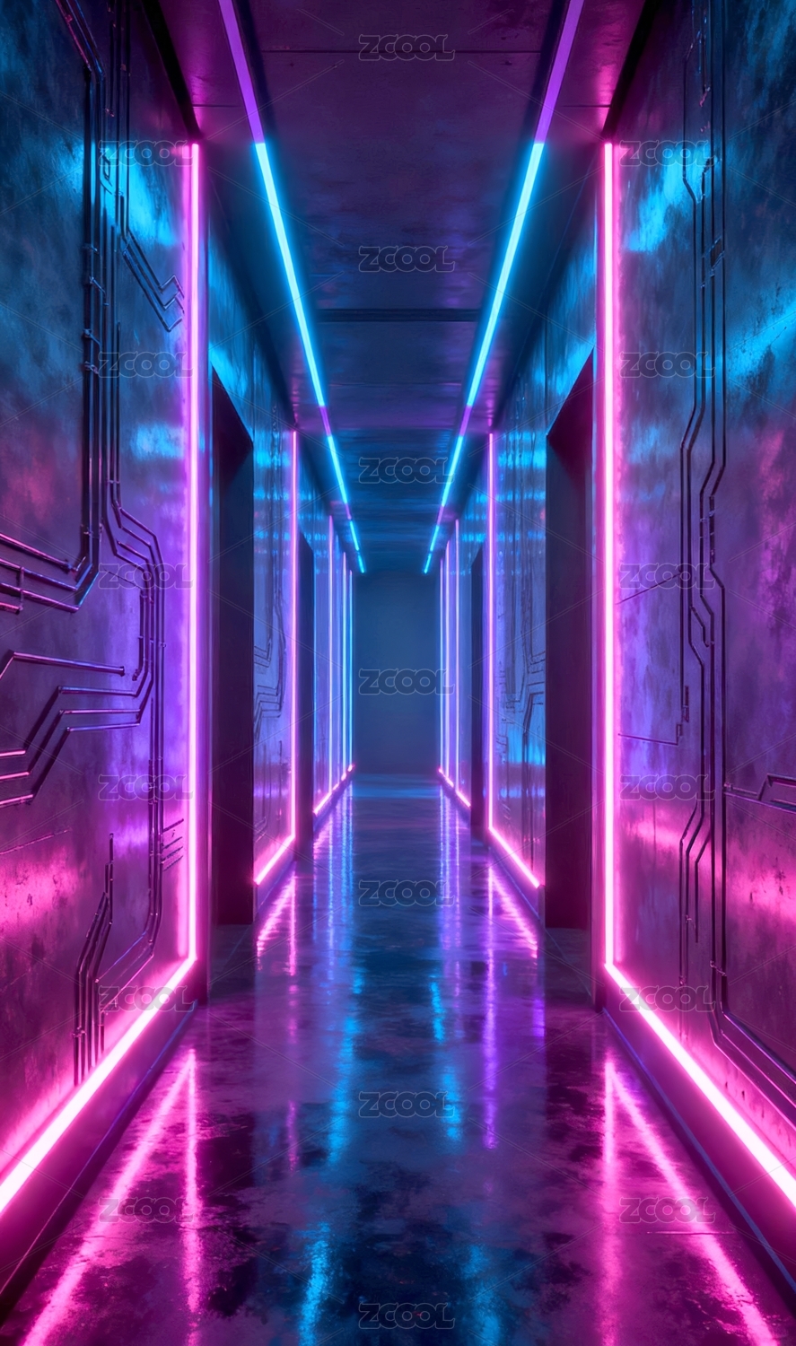 霓虹走廊赛博科技空间场景