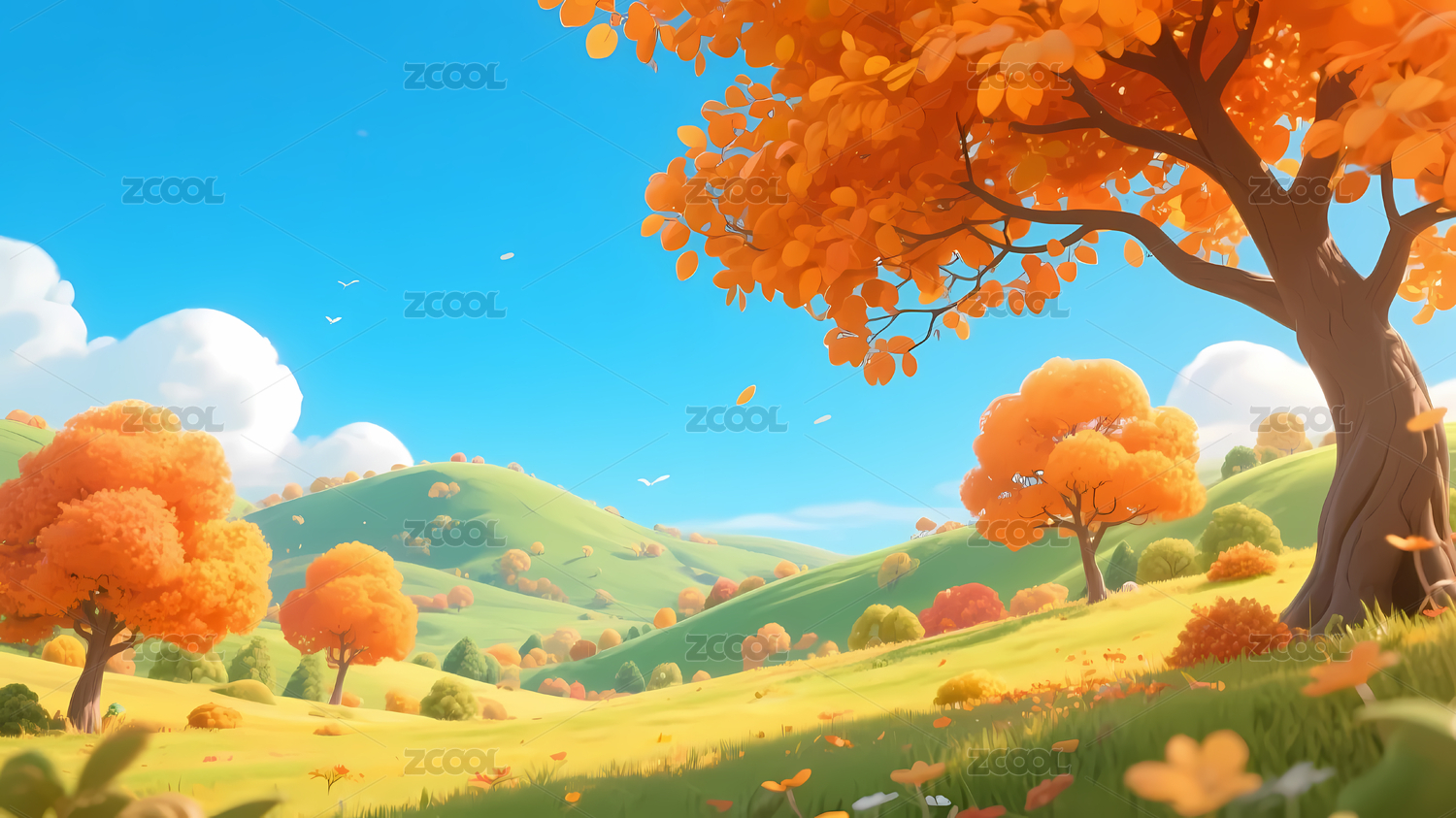 3D秋天自然户外风景插画背景壁纸