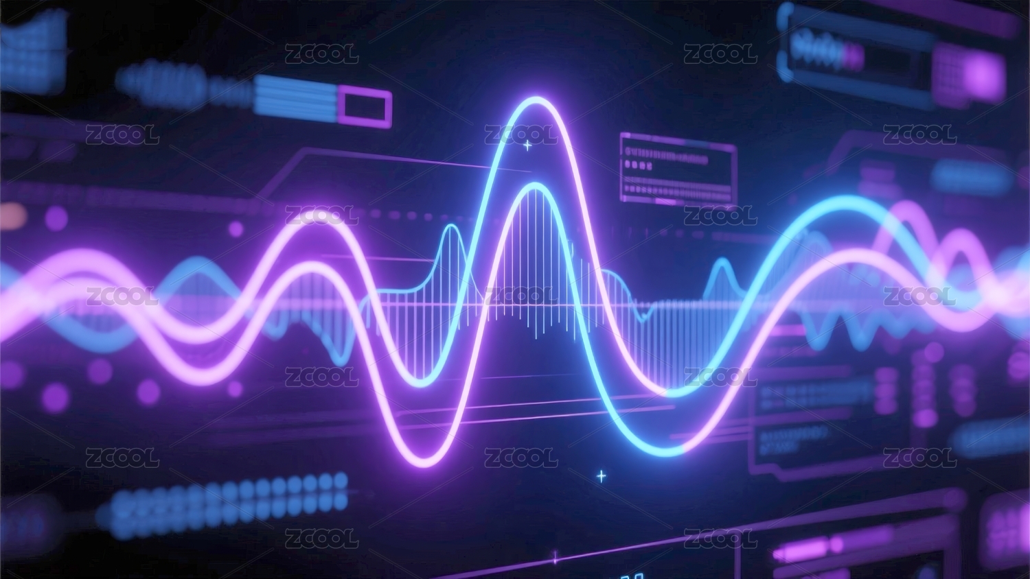 紫色声波与数字界面的抽象艺术