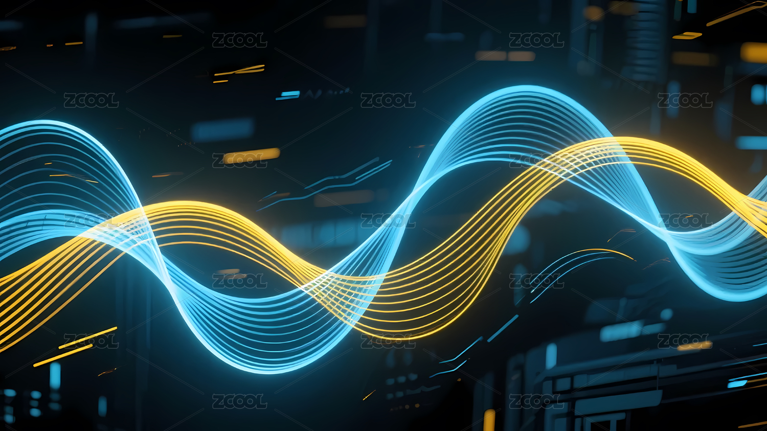 蓝黄波浪线条与科技背景