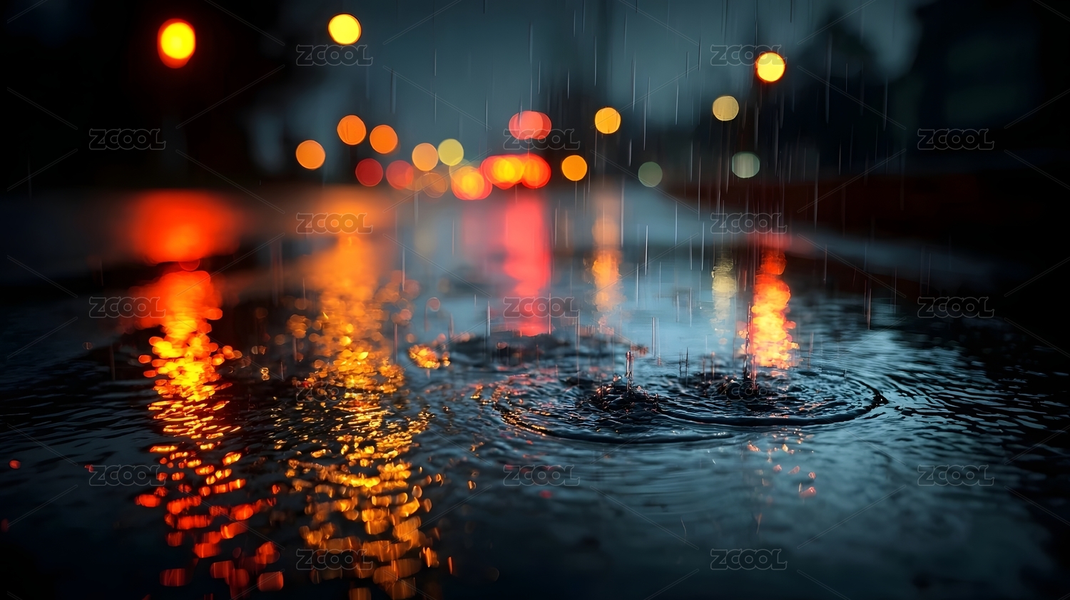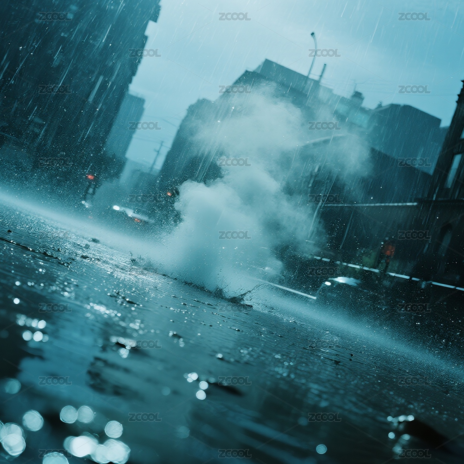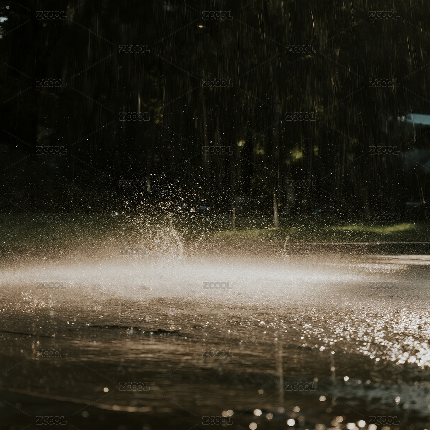 黑色雨伞上雨滴密布湿漉细节,阴暗忧郁氛围
