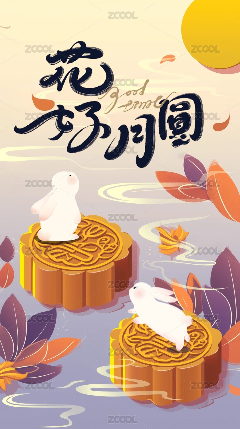 中国风月饼兔子满月桂花古建筑节日模板 (4