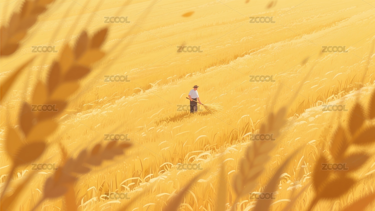 金黄麦田中的农夫收割