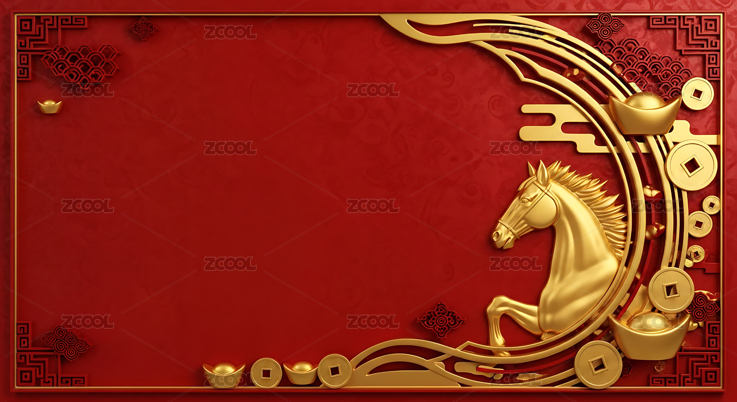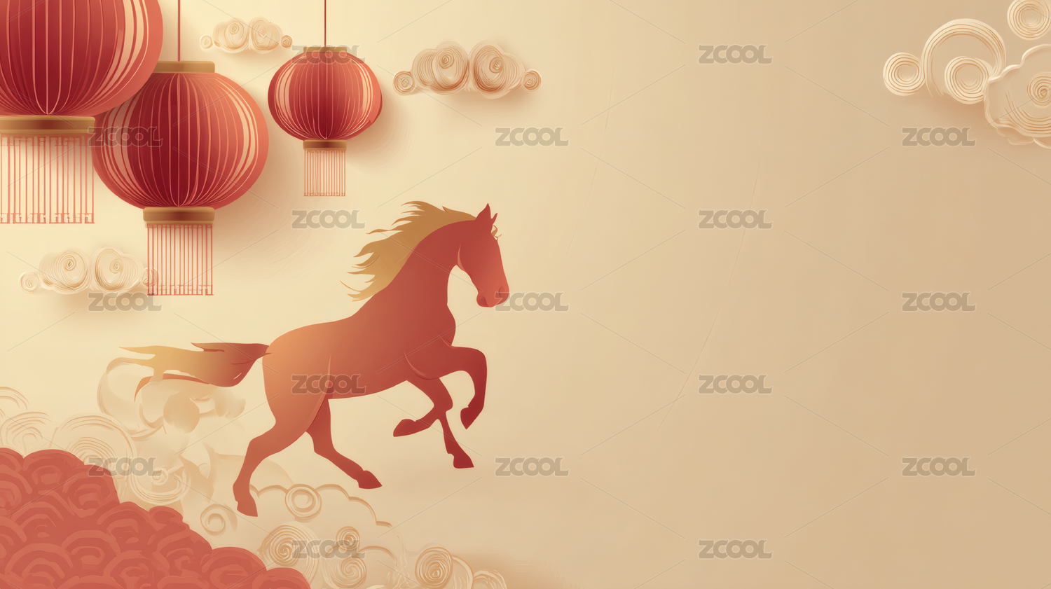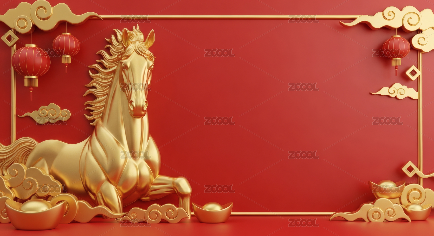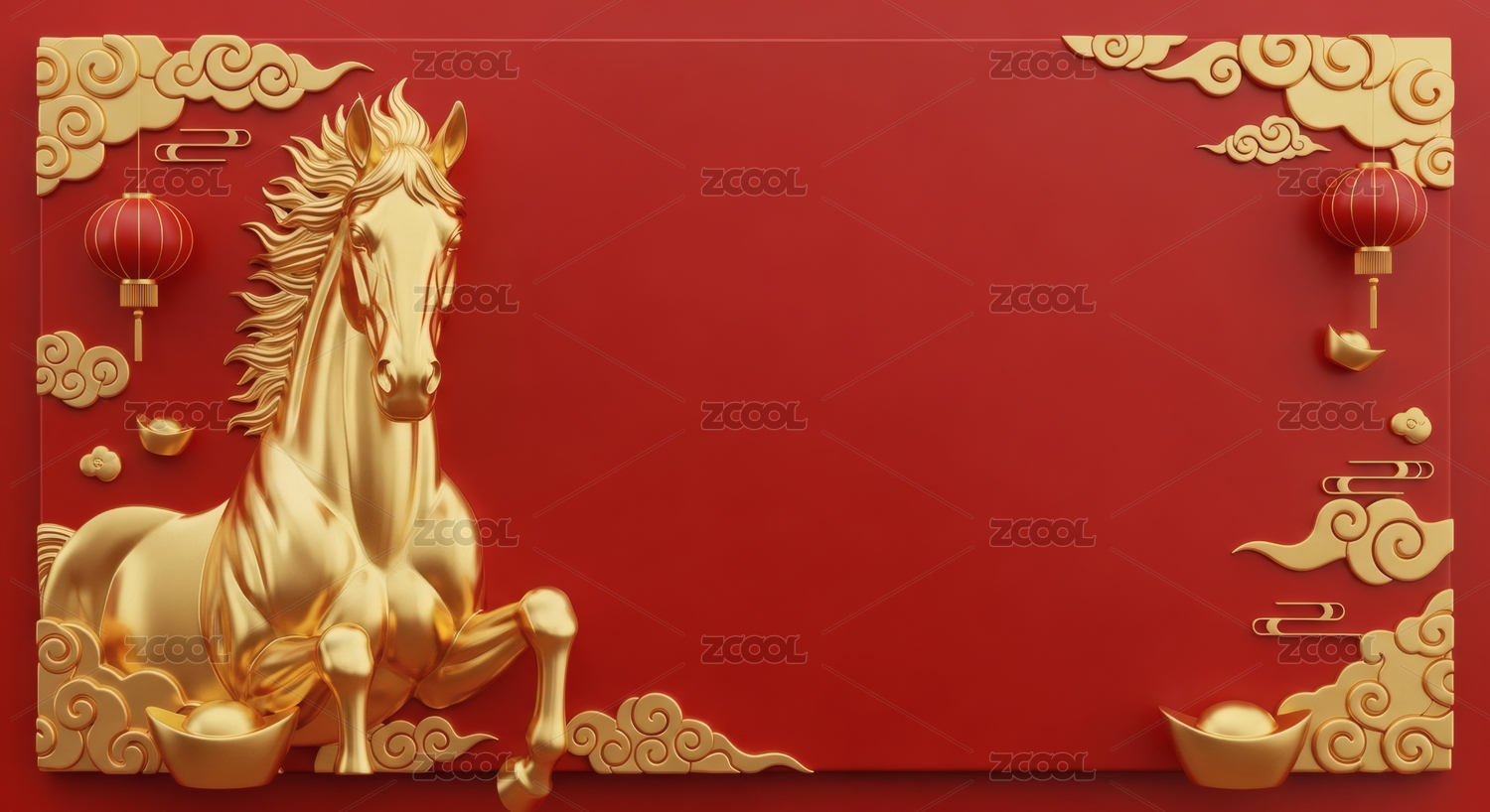 骏马,红色,金色,春节,灯笼,祥云,喜庆,吉祥,财富,好运