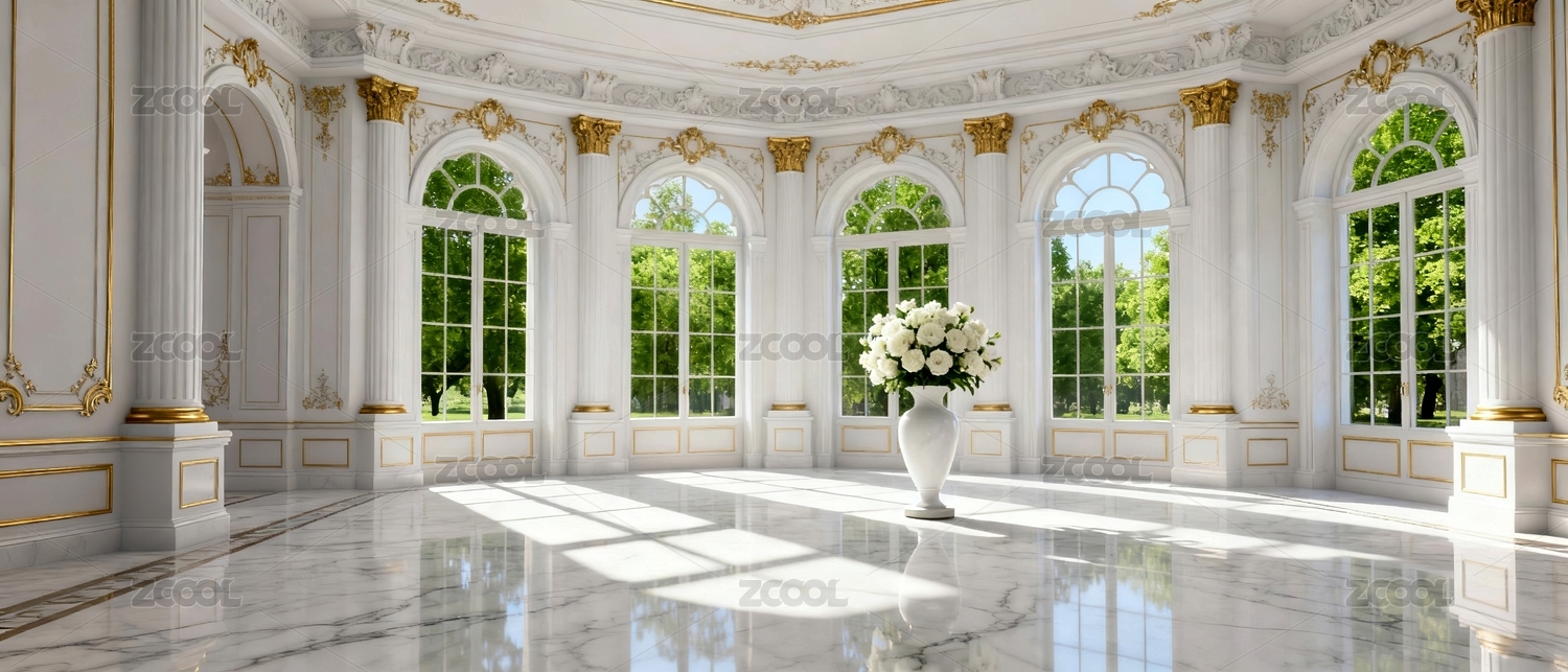 别墅窗边盛开着浪漫唯美的玫瑰花背景墙