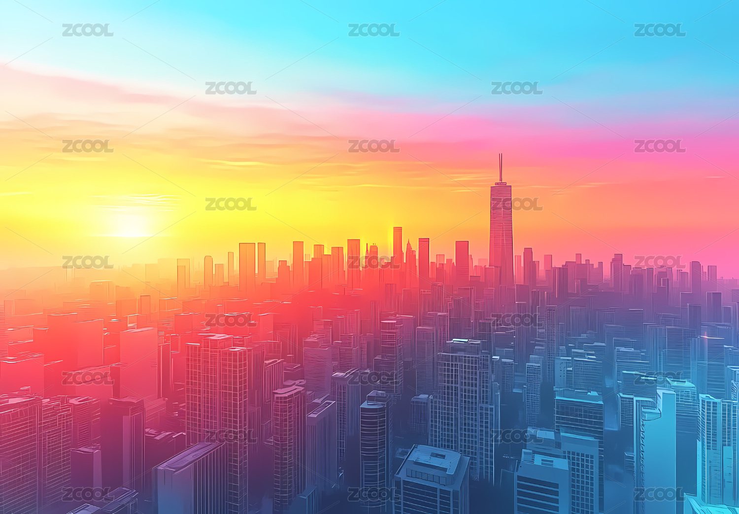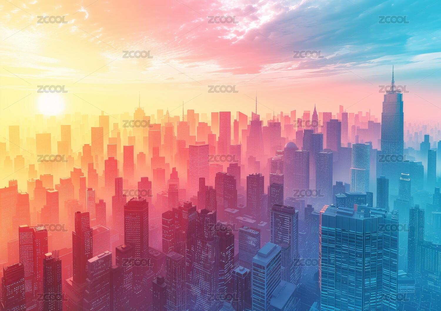 日出城市摩天大楼