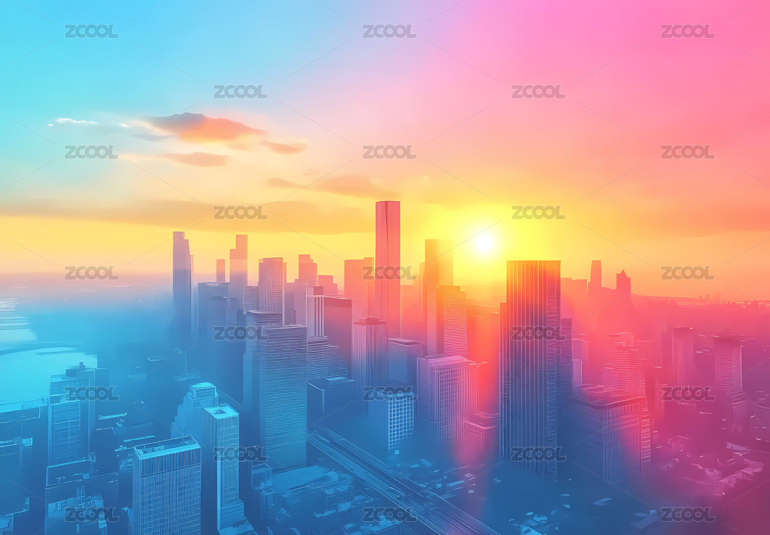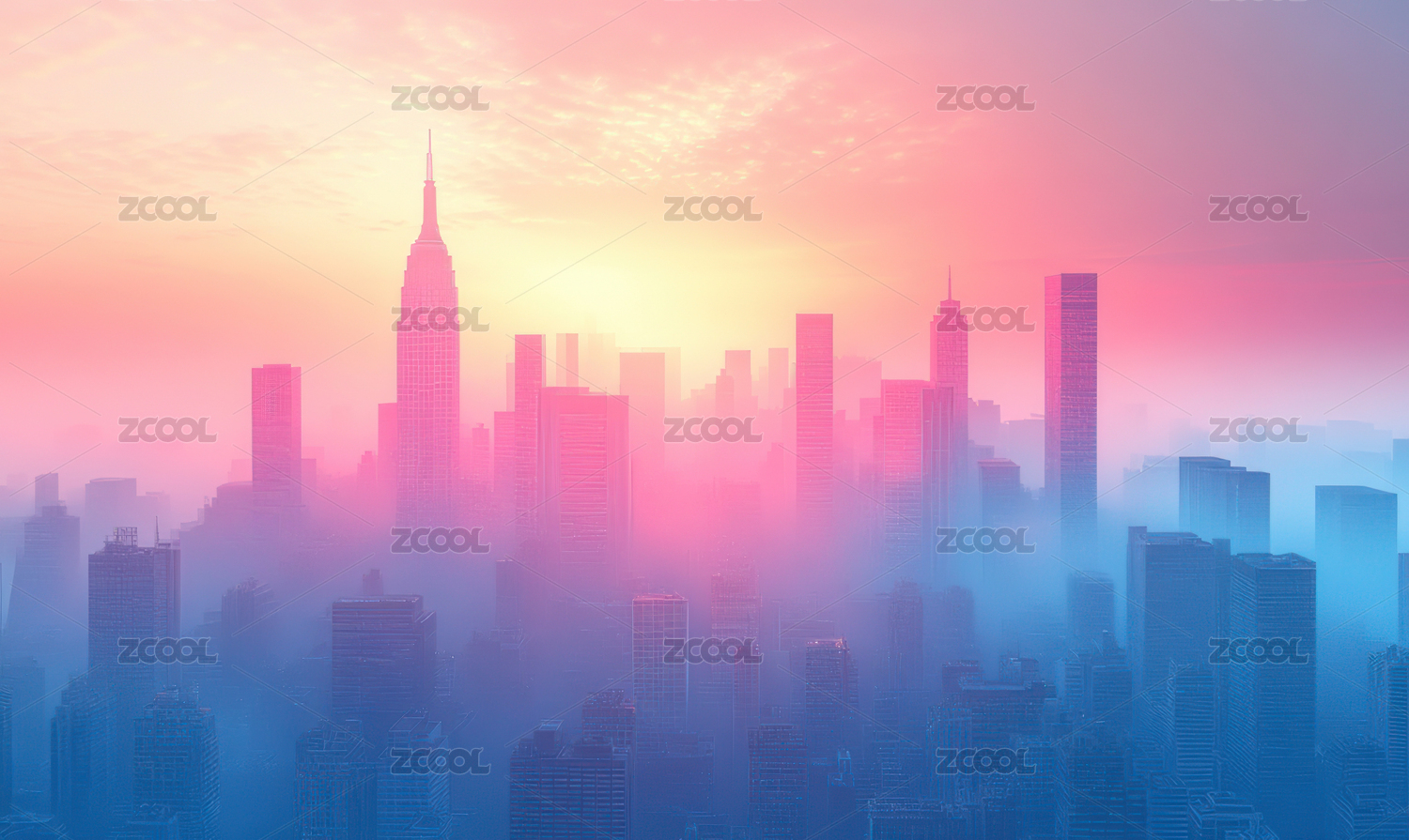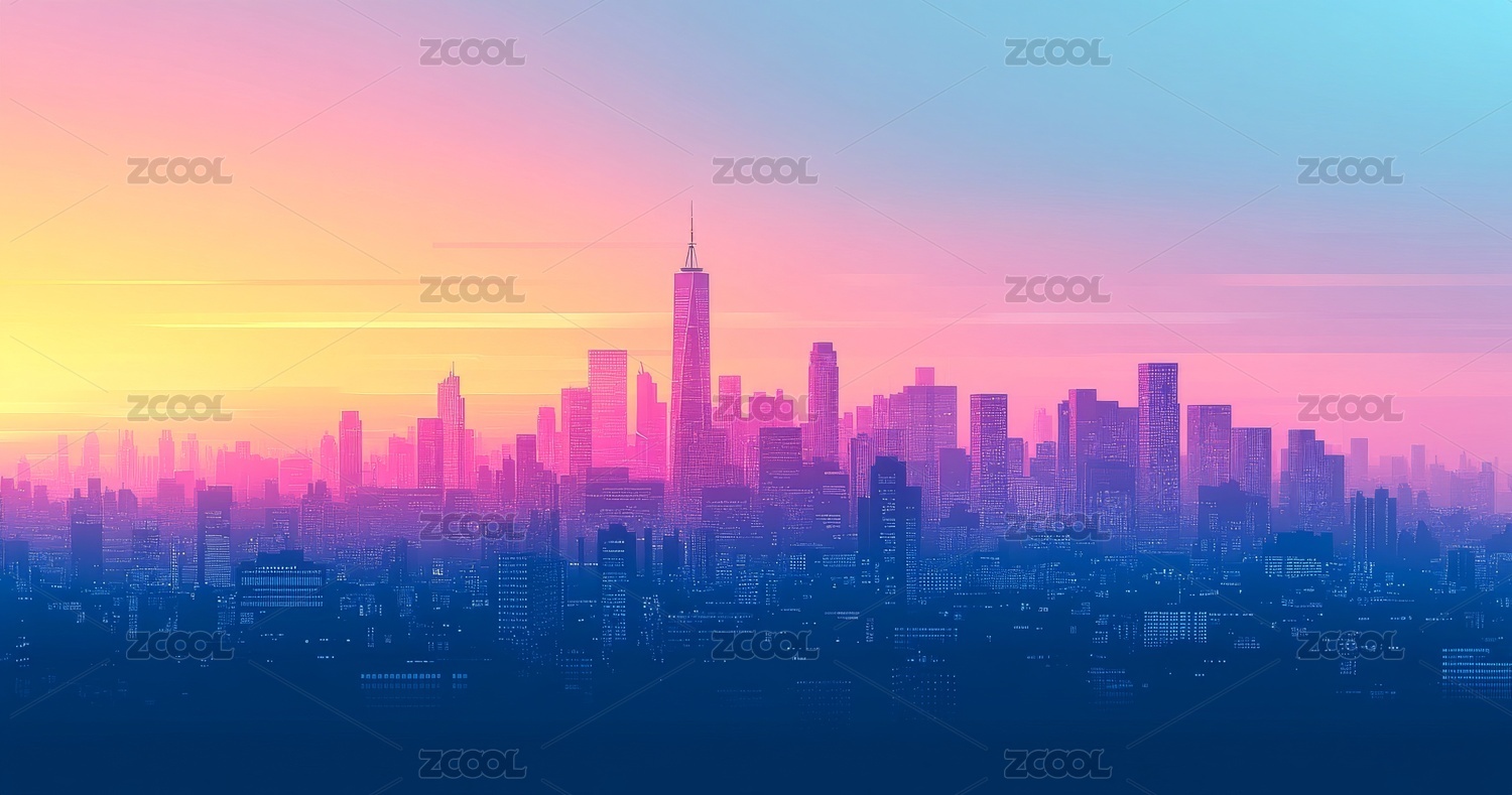 梦幻,天际线,光影,雾气,科幻,绚丽,城市,背景,抽象,现代
