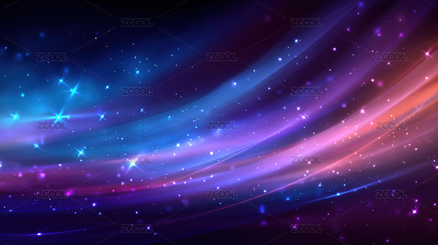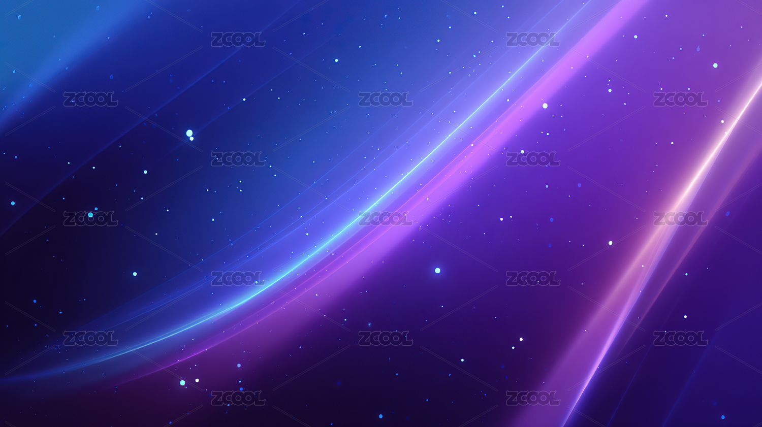 梦幻的蓝色与紫色发光粒子波浪背景