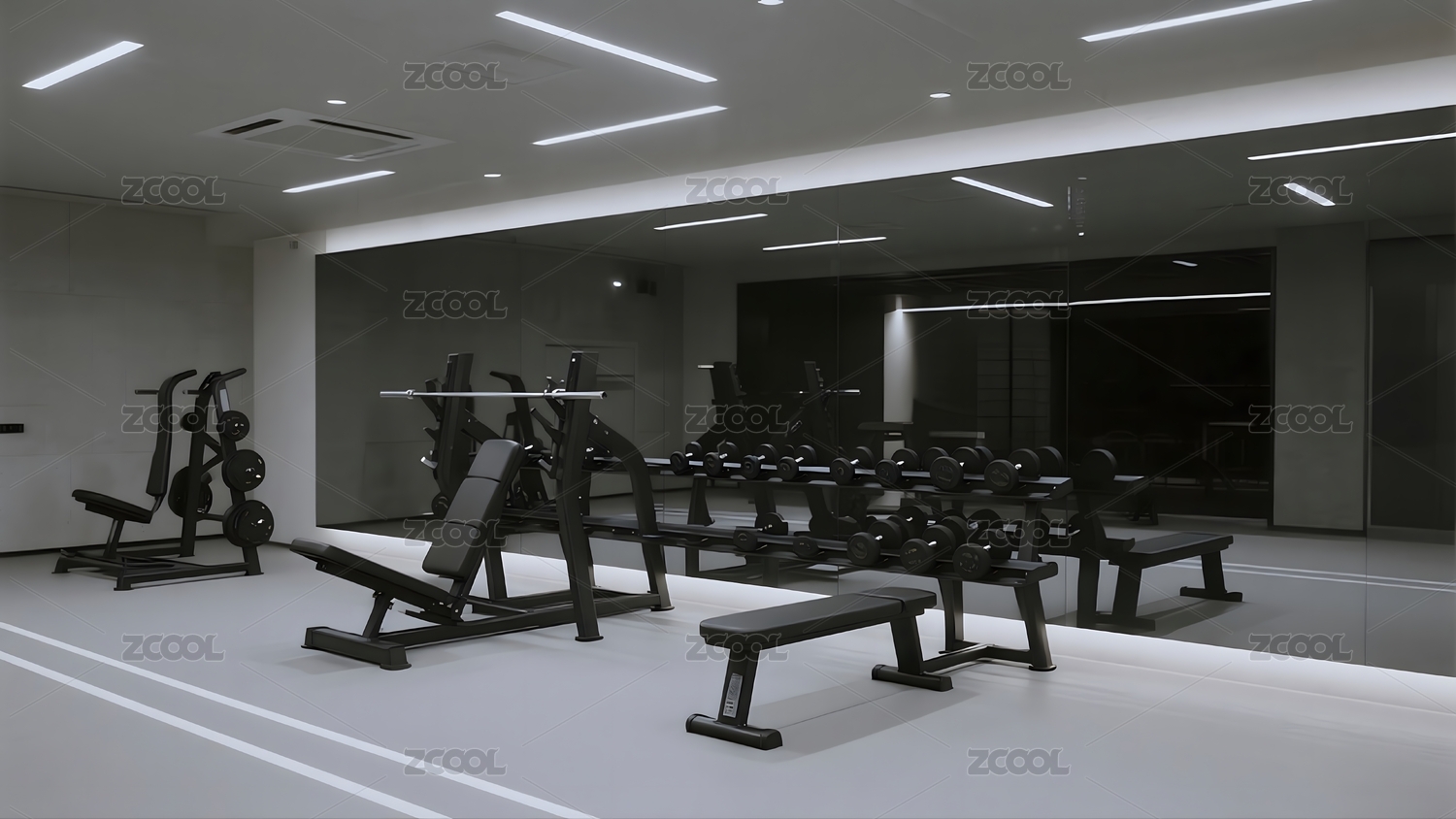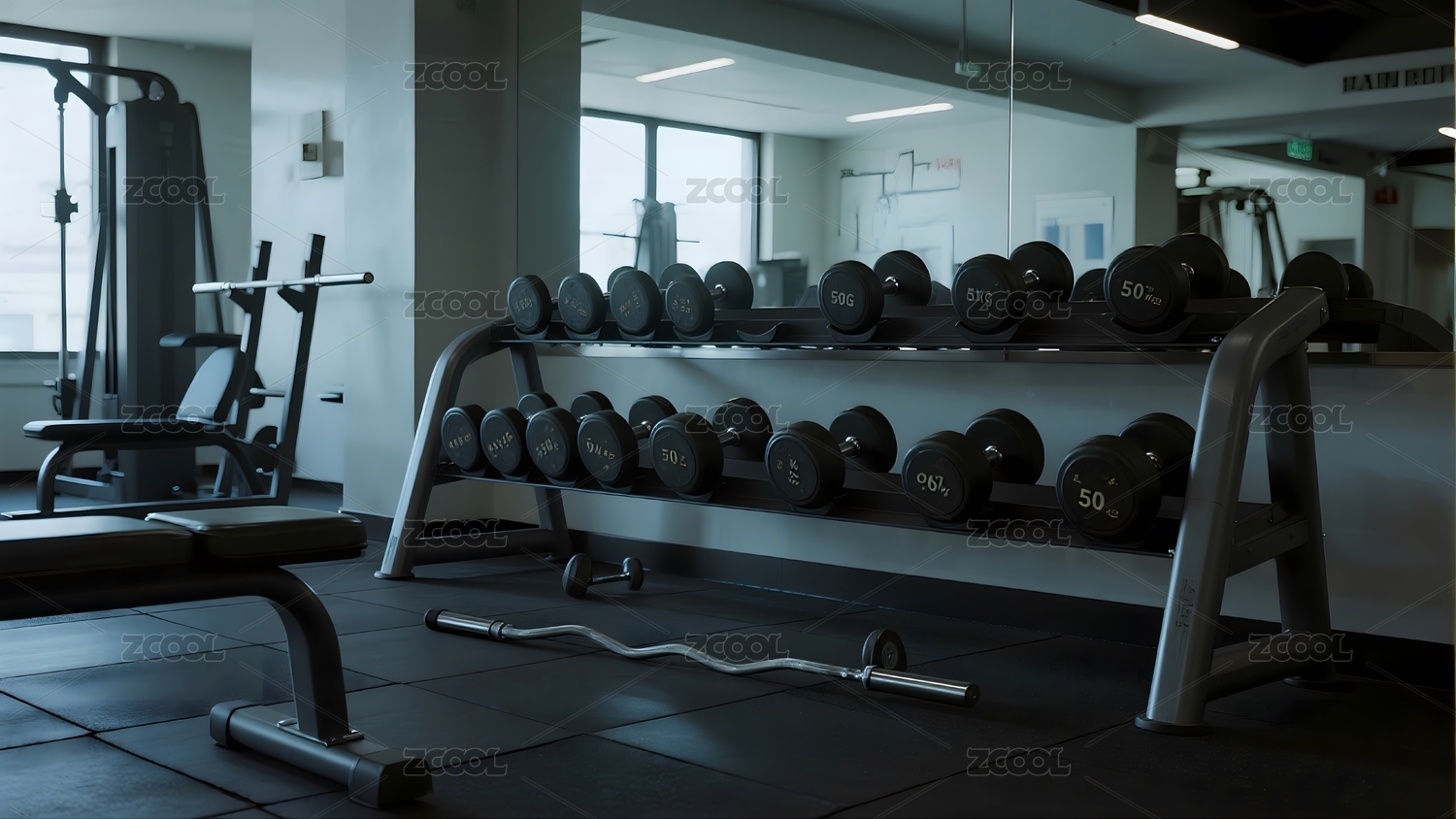 金属框架,健身房,健身器材,健康生活,跑步机,科技感,现代设计,室内环境,运动设备,明亮光线