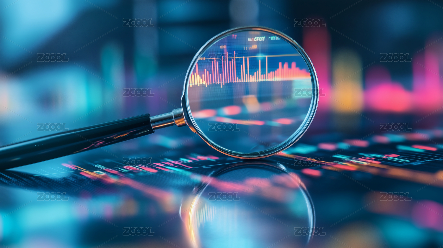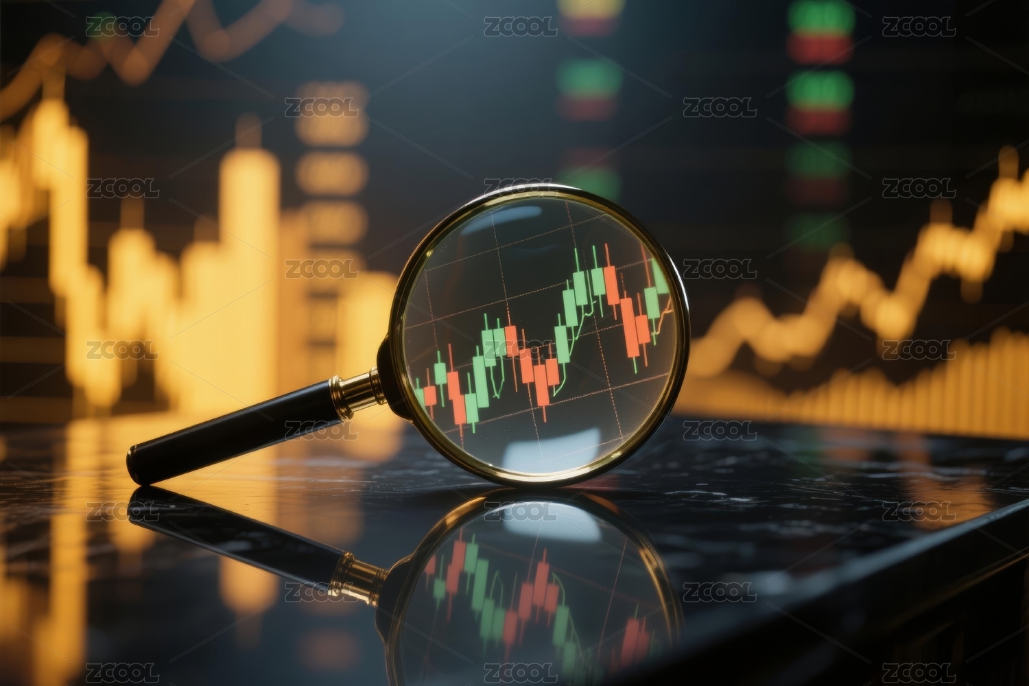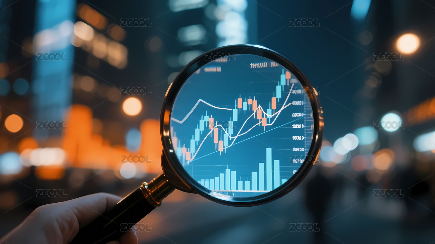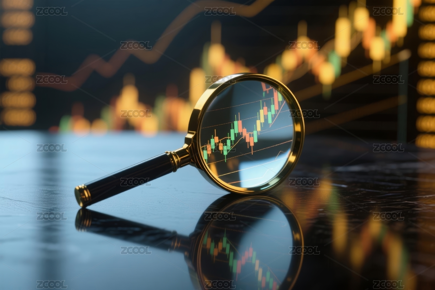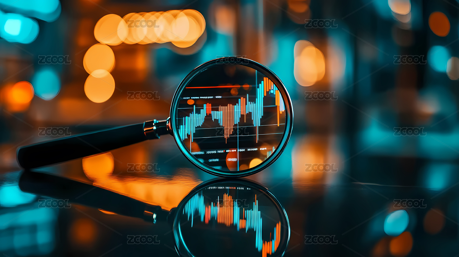 放大镜聚焦金融图表场景