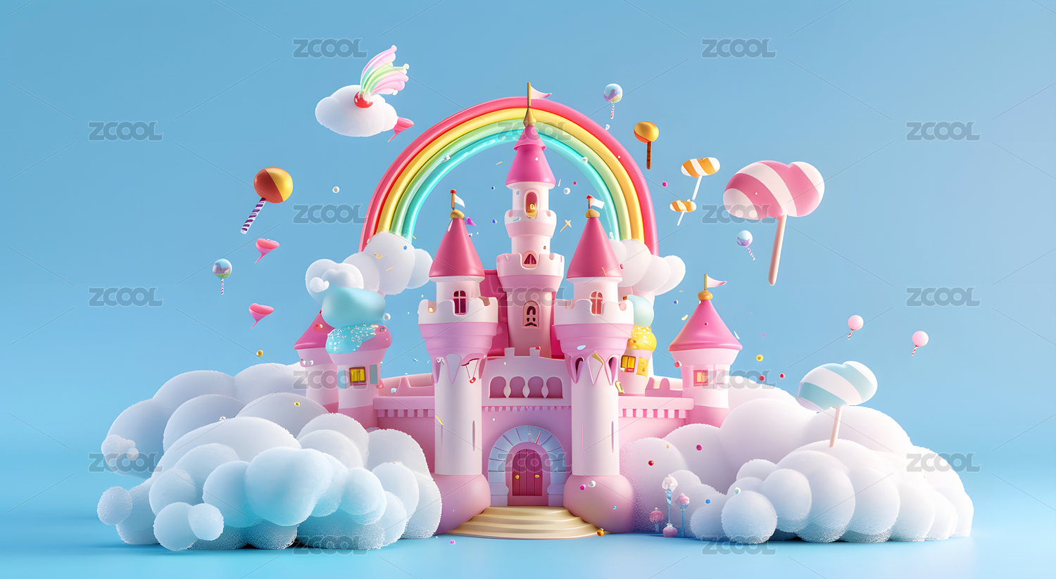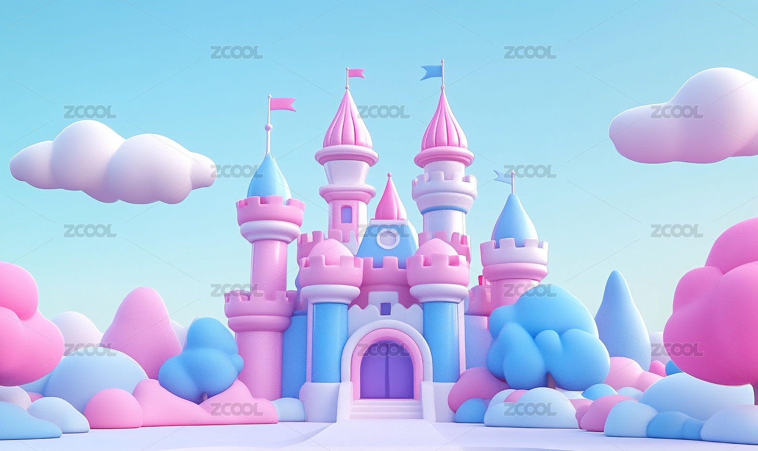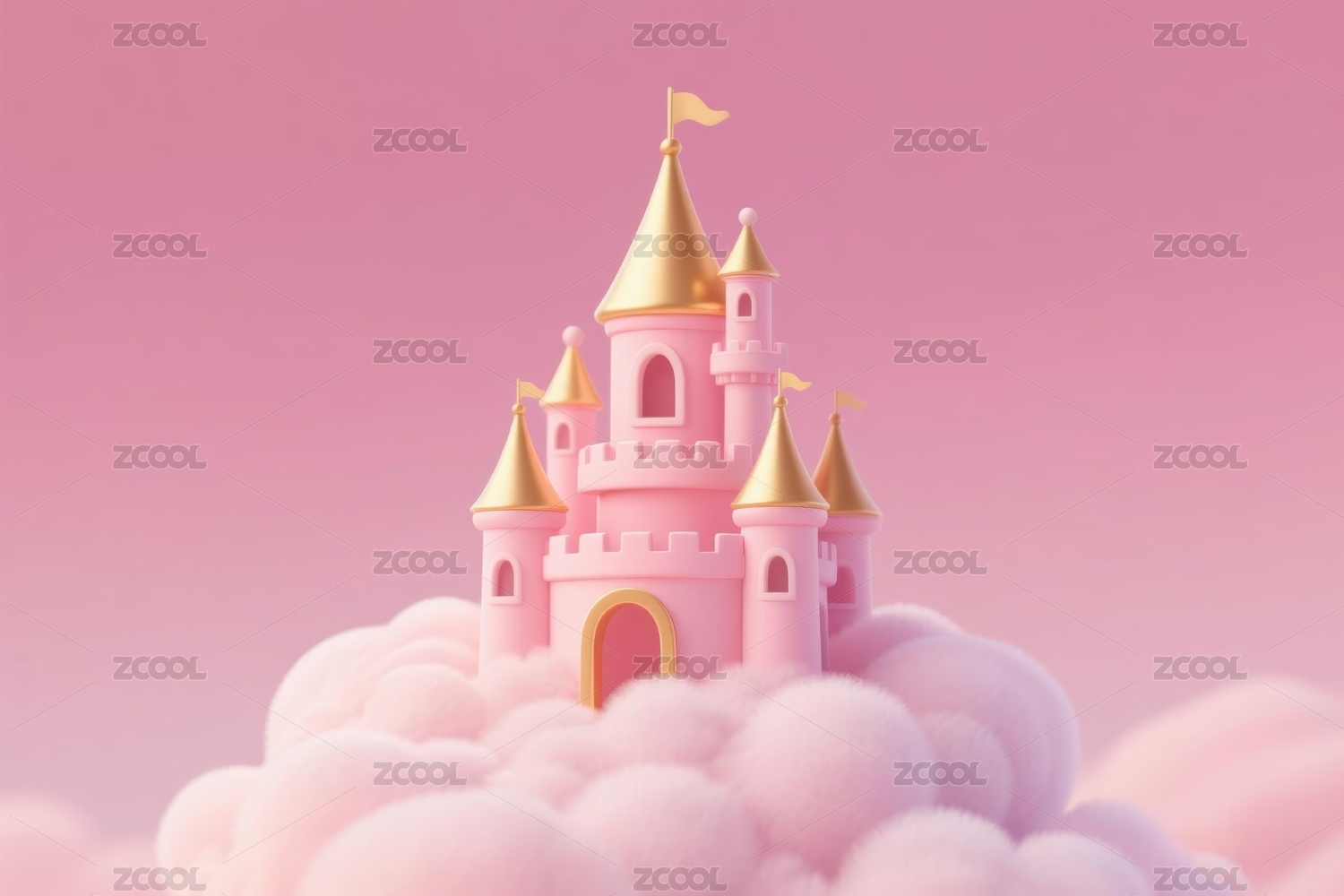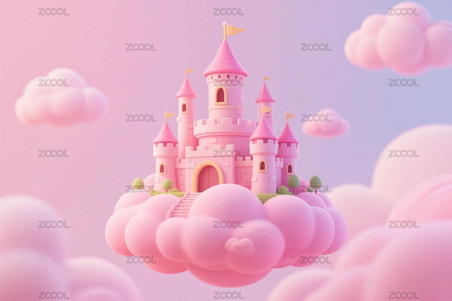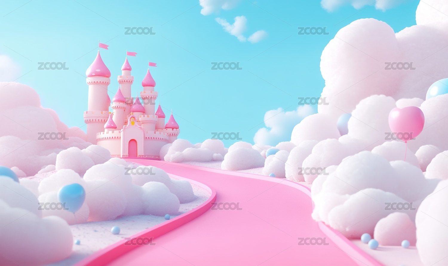 主视觉,商业,城堡,粉色,梦幻,童话,场景,云朵,天空,浪漫