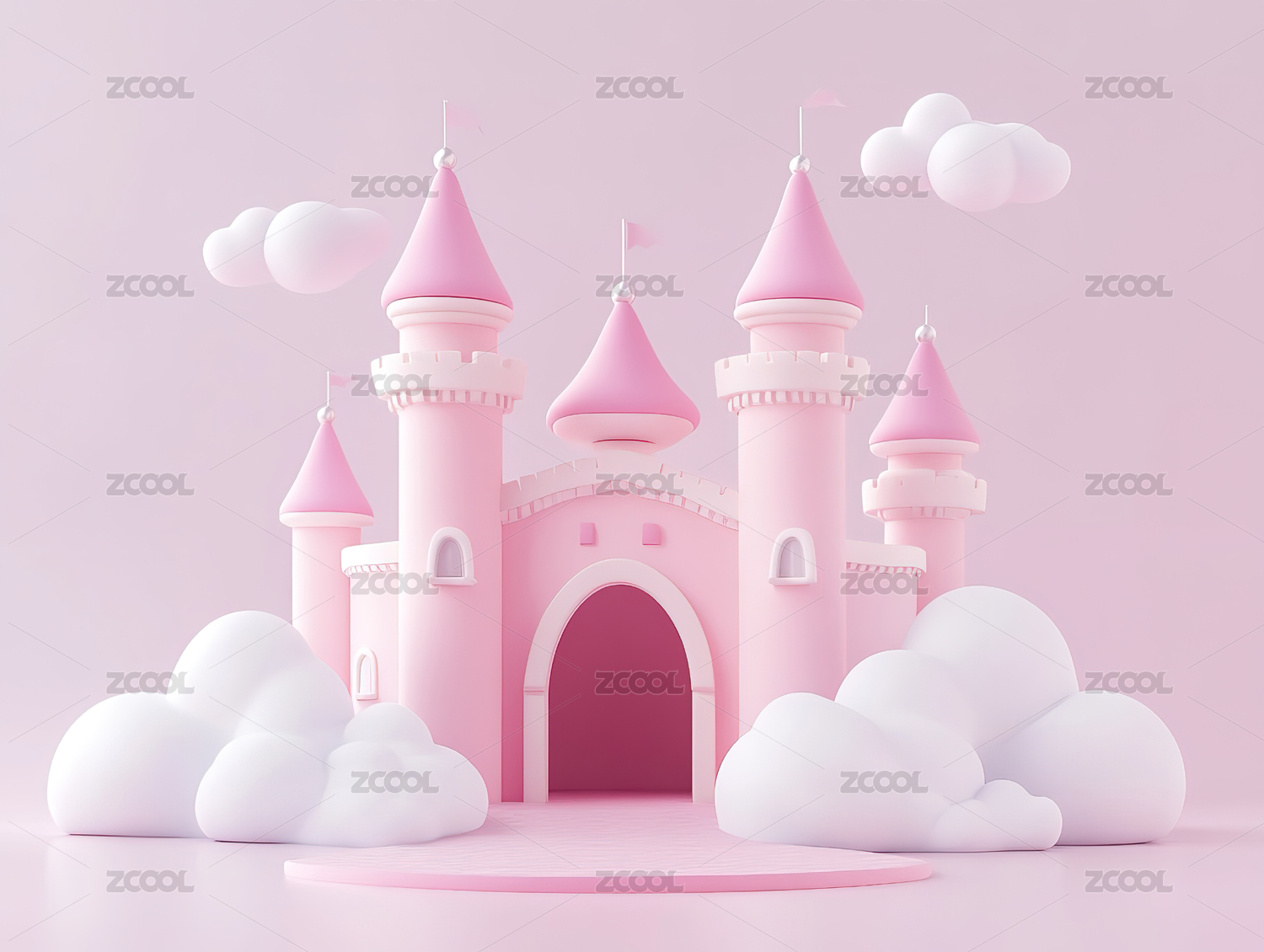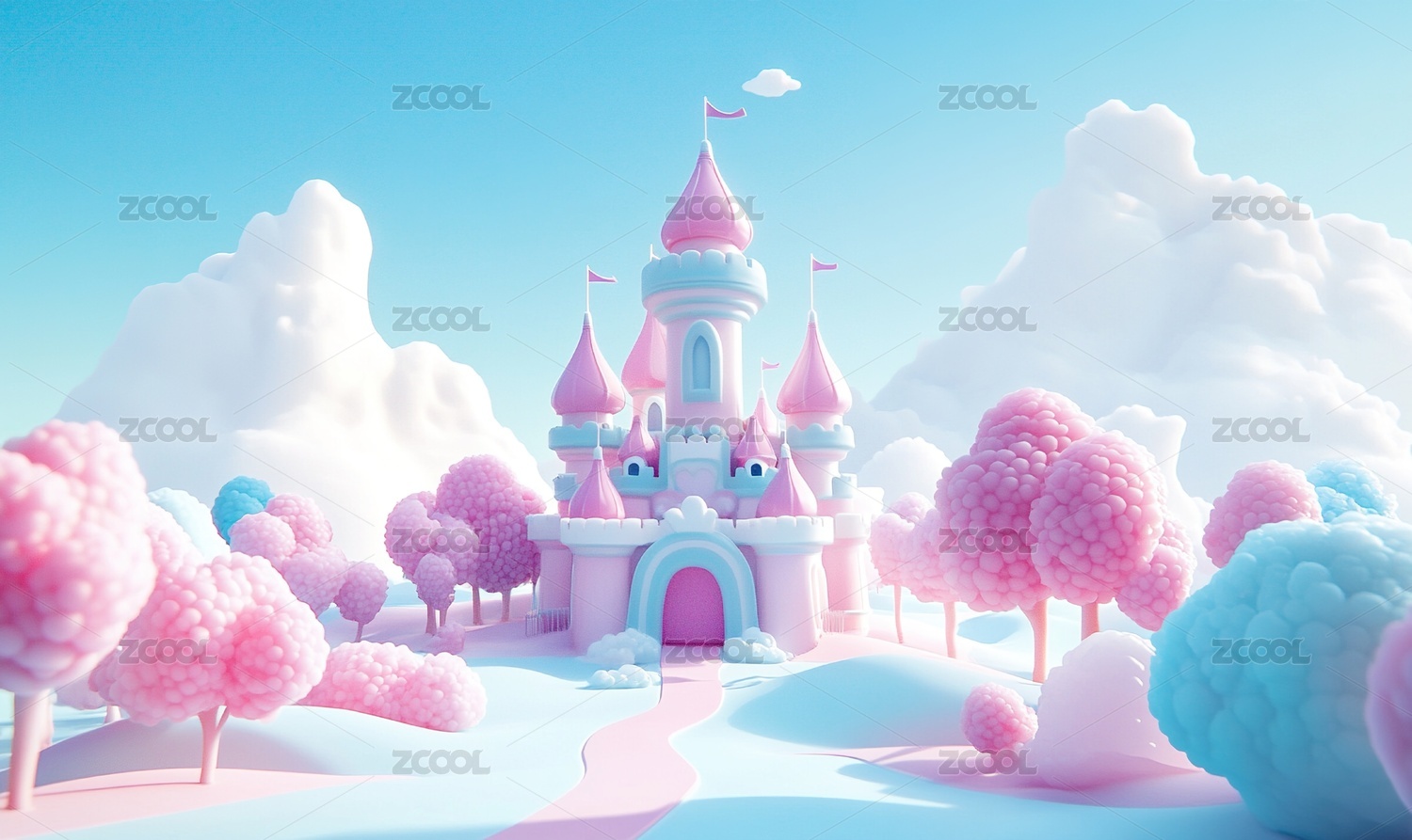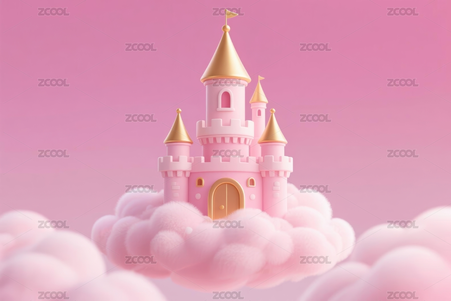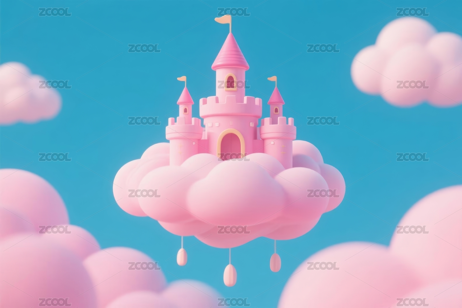 主视觉,商业,城堡,粉色,梦幻,童话,场景,云朵,天空,浪漫