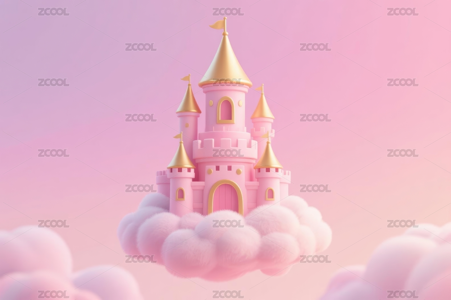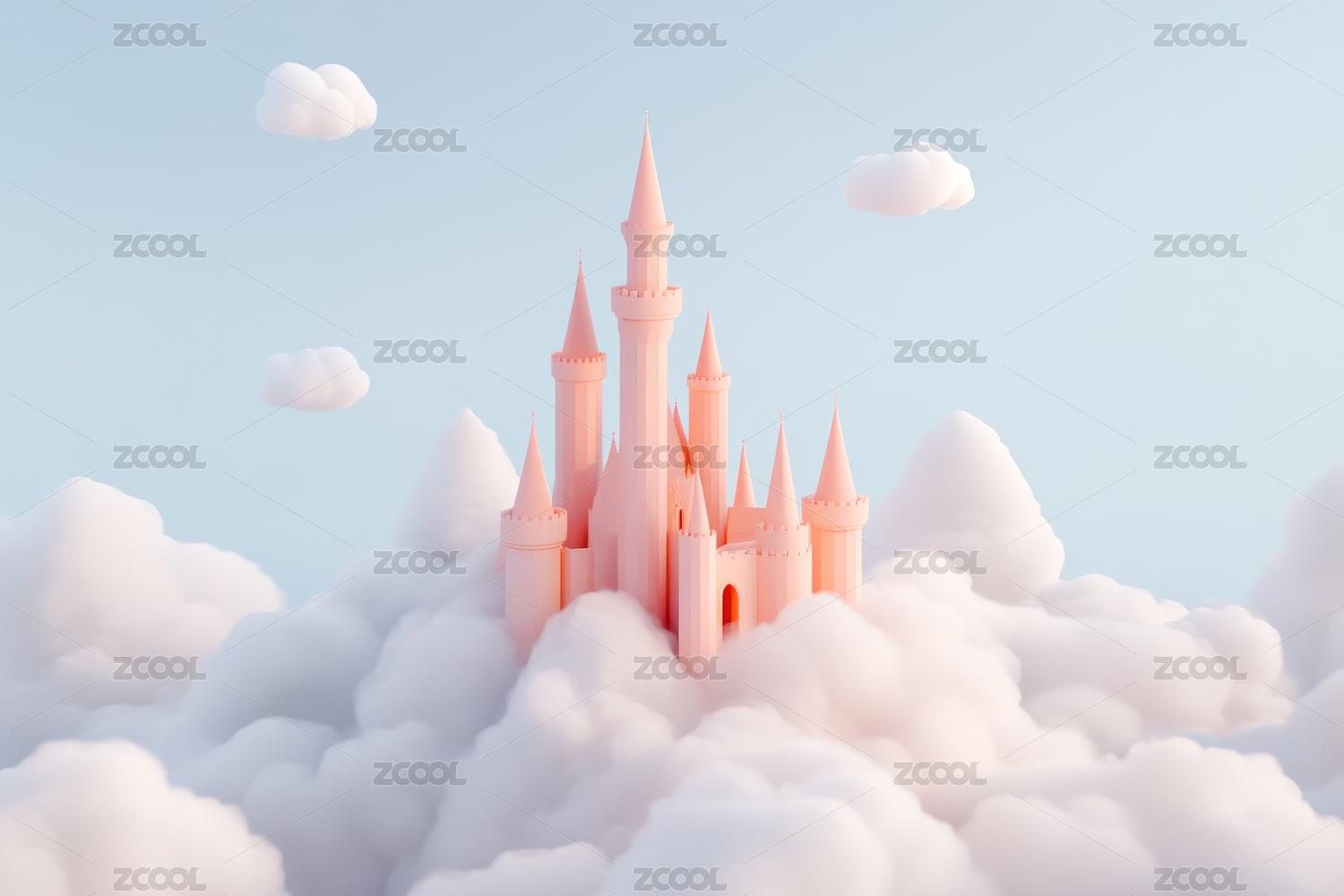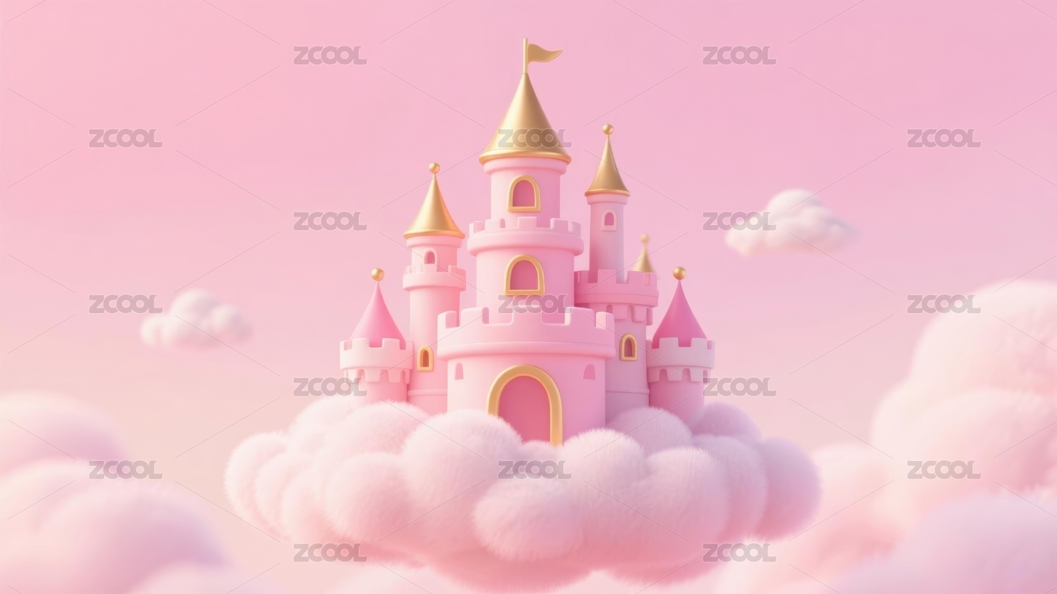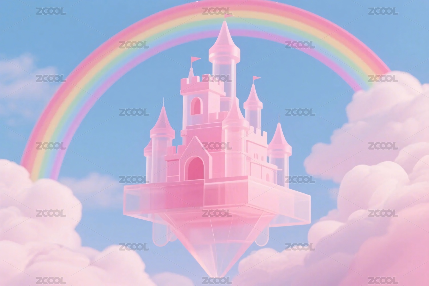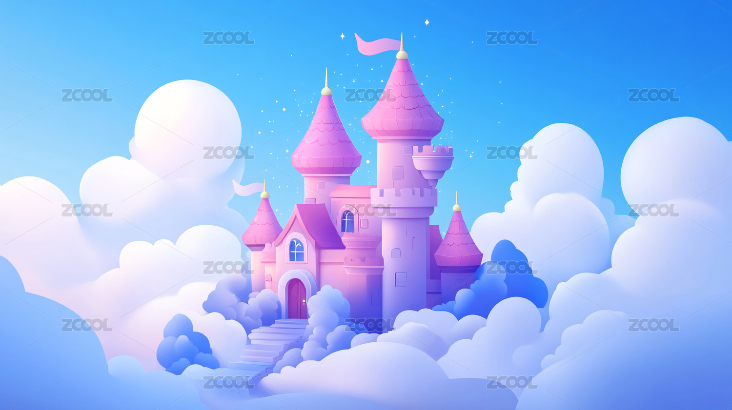 主视觉,商业,城堡,粉色,梦幻,童话,场景,云朵,天空,浪漫