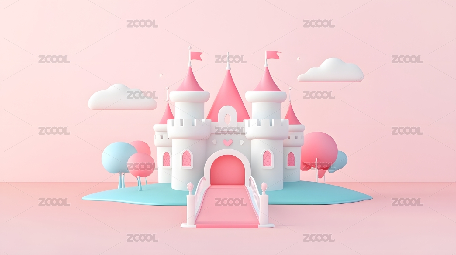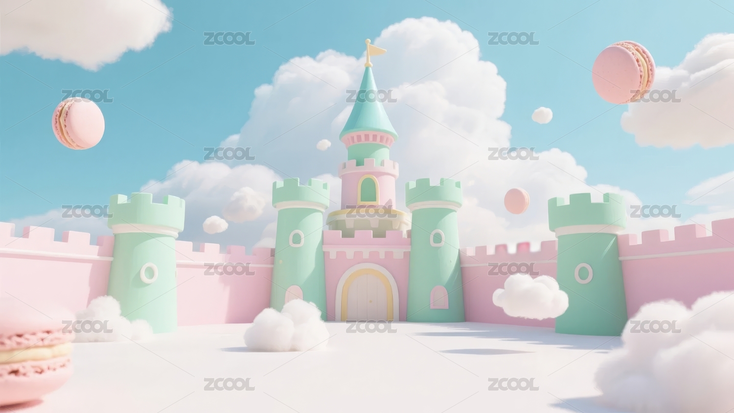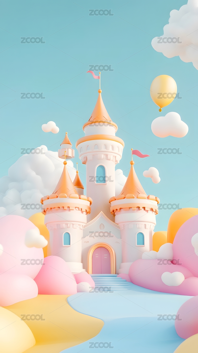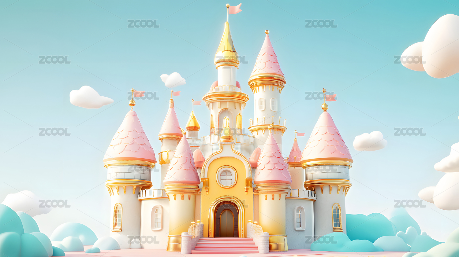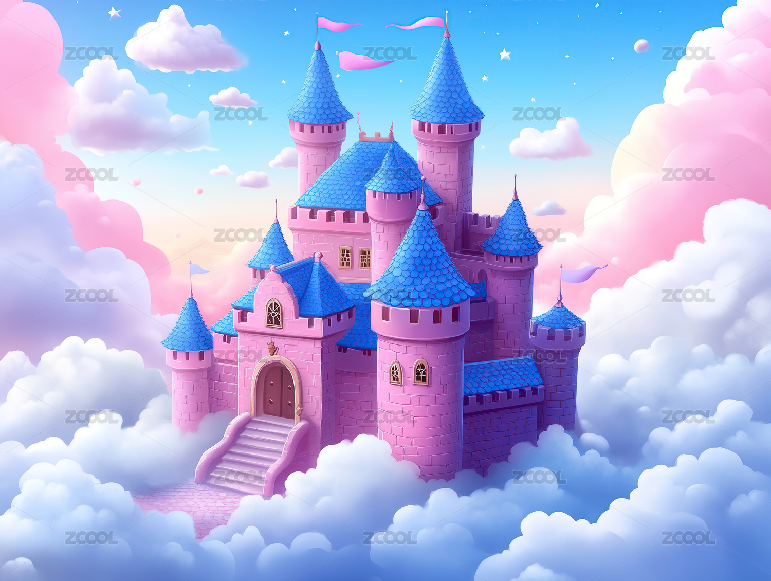 主视觉,商业,城堡,粉色,梦幻,童话,场景,云朵,天空,浪漫