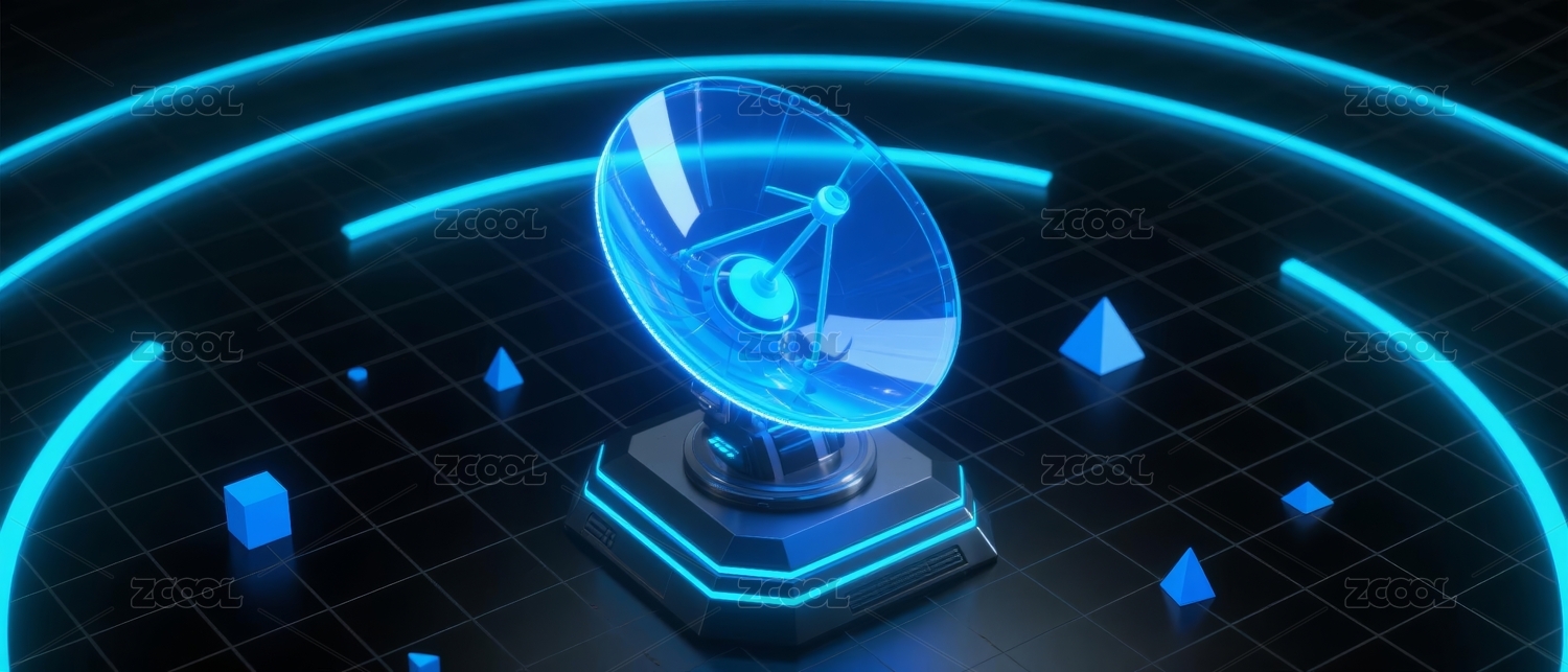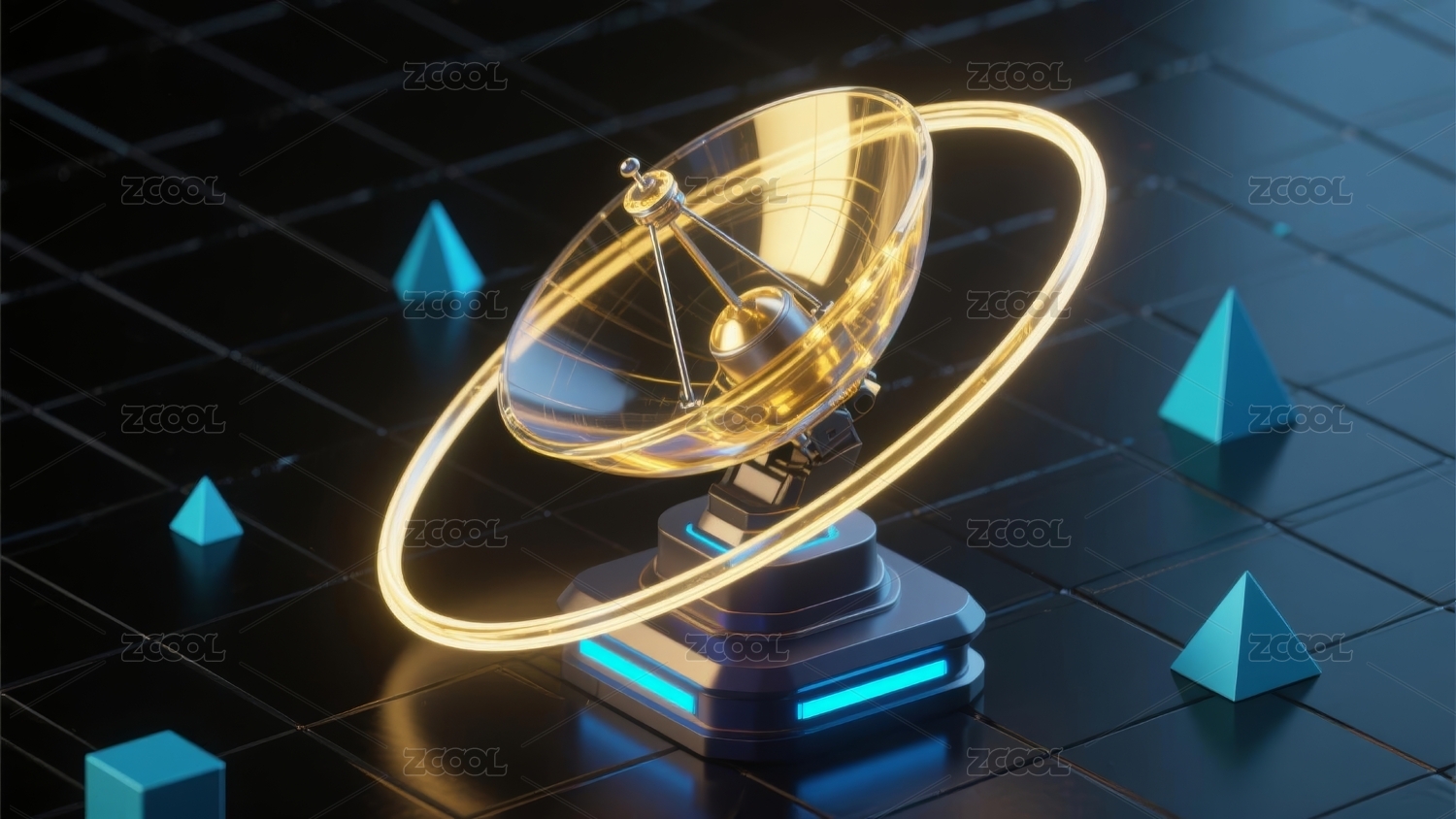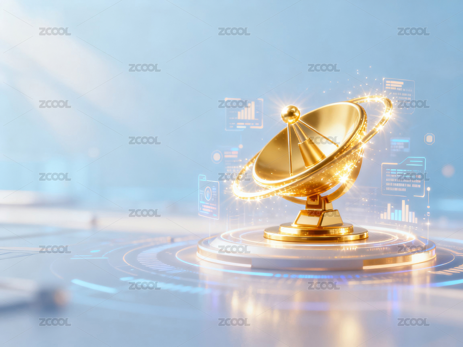 主视觉,商业,卫星,天线,科技,展示,场景,蓝色,金色,发光
