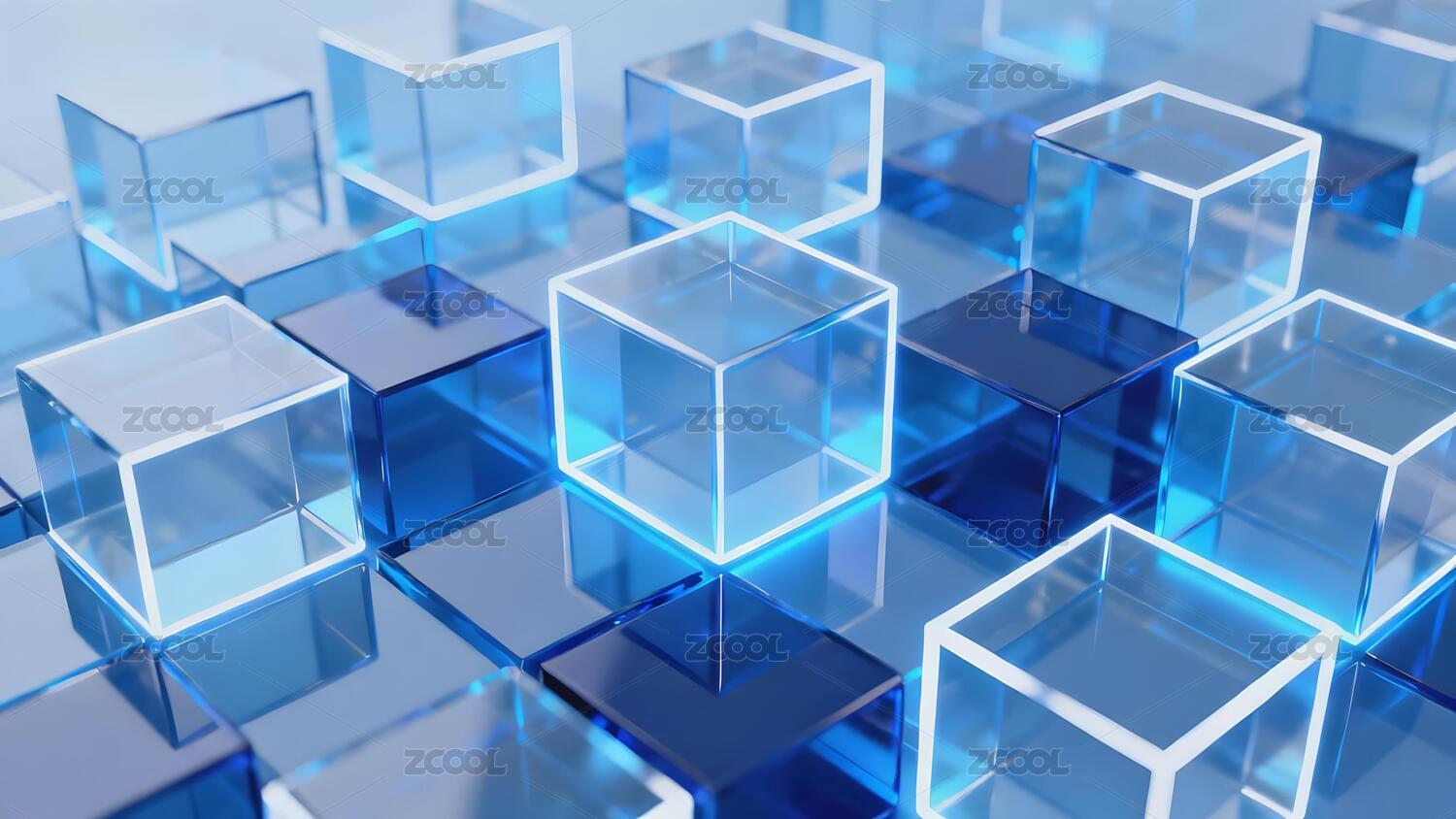 主视觉,商业,蓝色,透明,方块,科技感,堆叠,场景,立体,几何