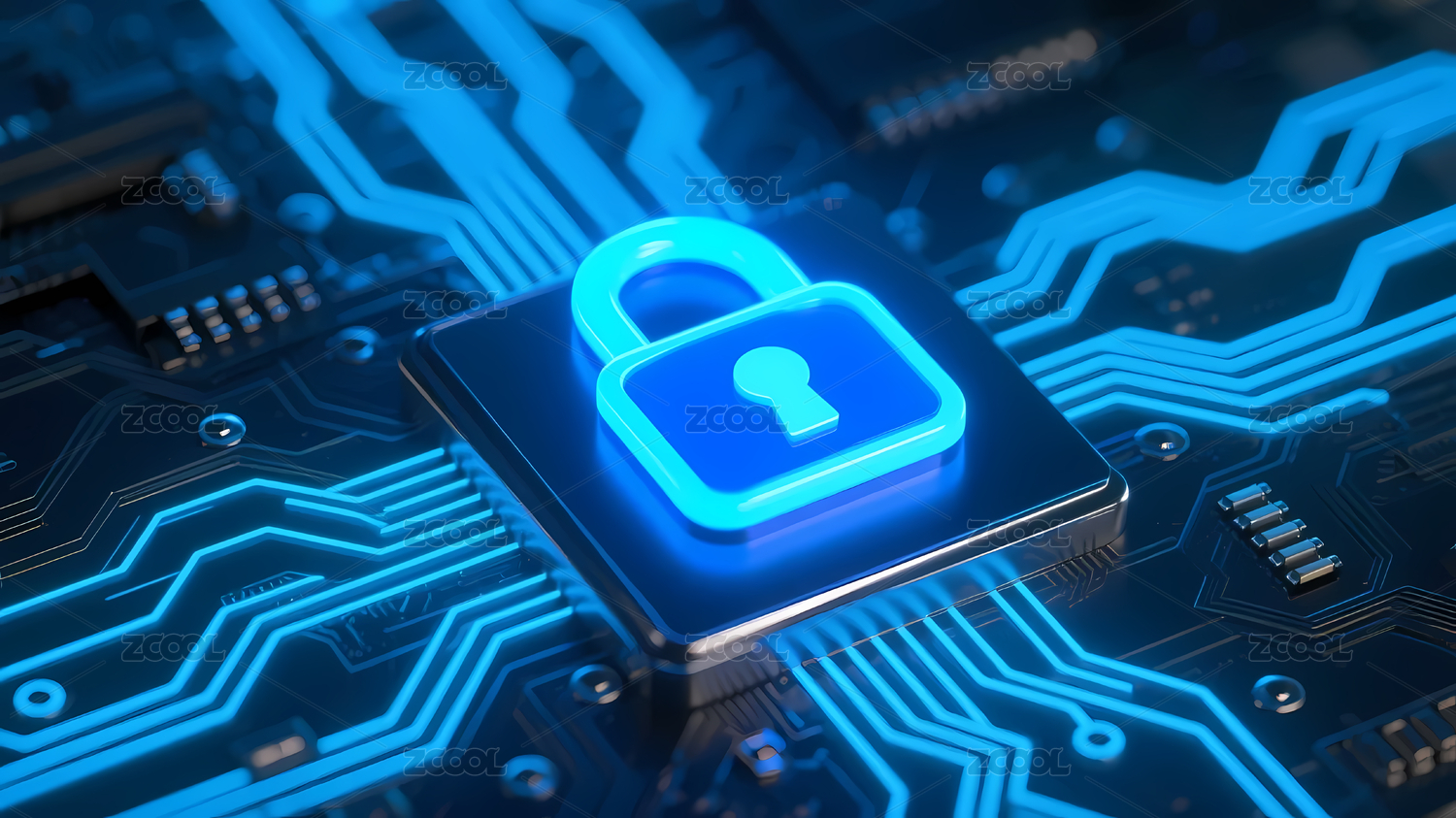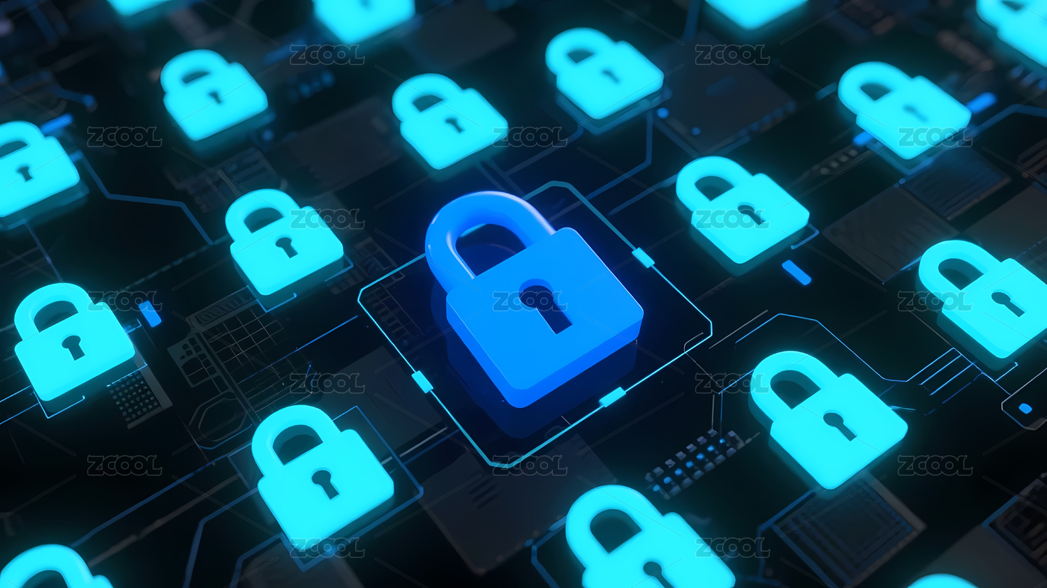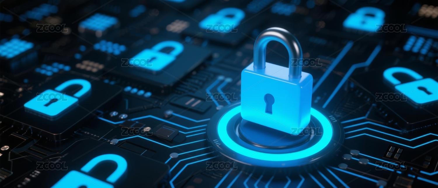 主视觉,商业,锁形,图标,科技,安全,场景,蓝色,霓虹,线条