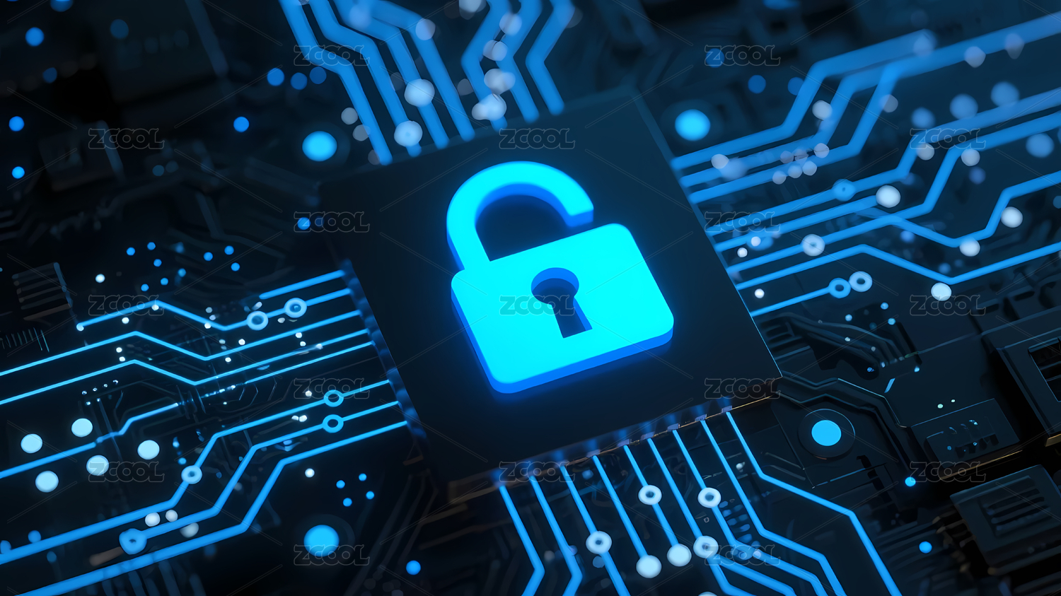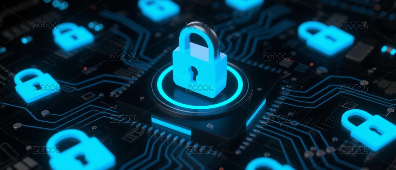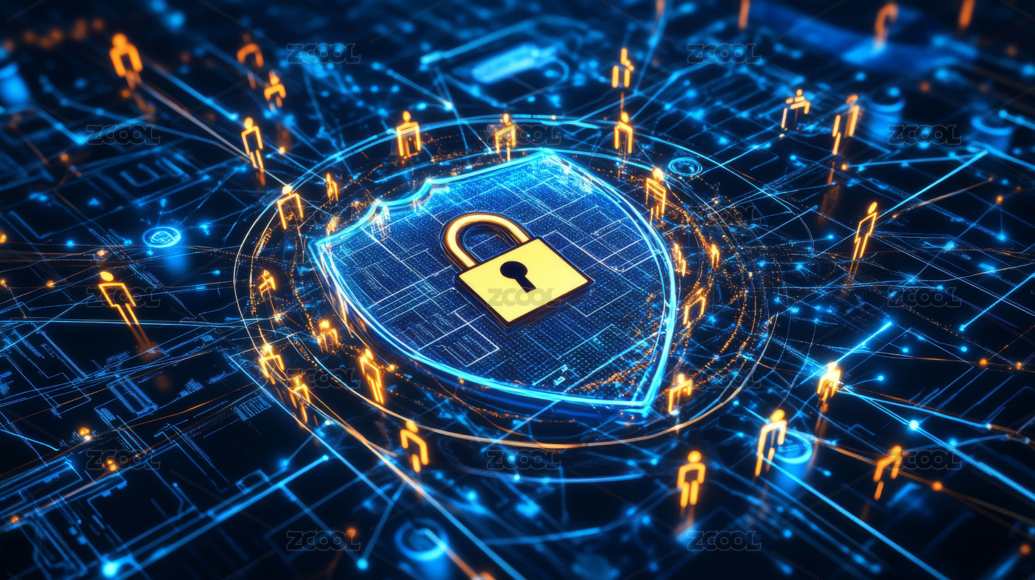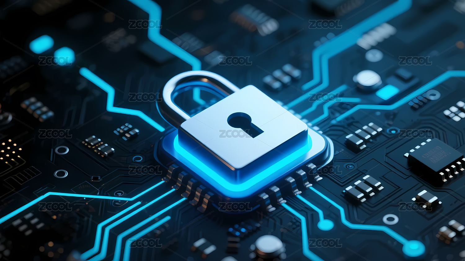 主视觉,商业,锁形,图标,科技,安全,场景,蓝色,霓虹,线条