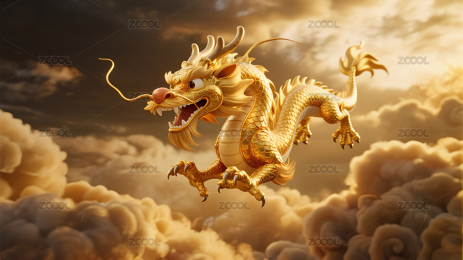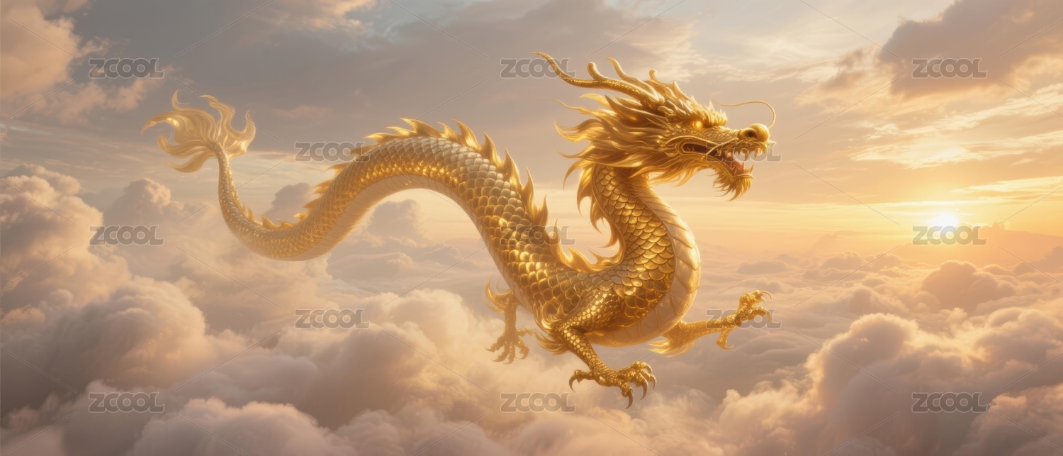 主视觉,商业,金龙,祥瑞,云海,场景,金色,神龙,云雾,日出