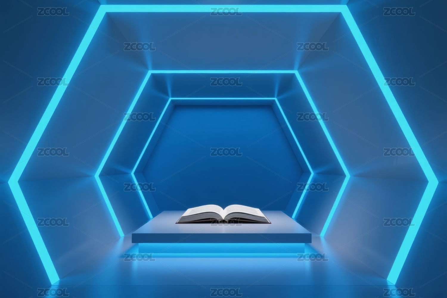 主视觉,商业,书本,科技,展示,场景,蓝色,霓虹,线条,空间