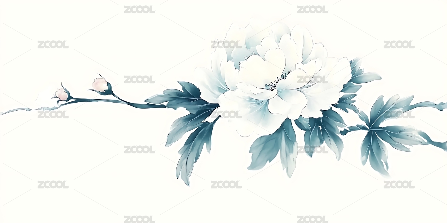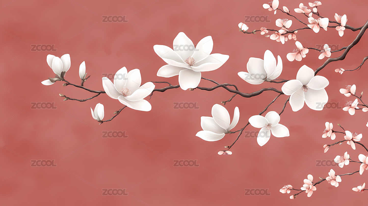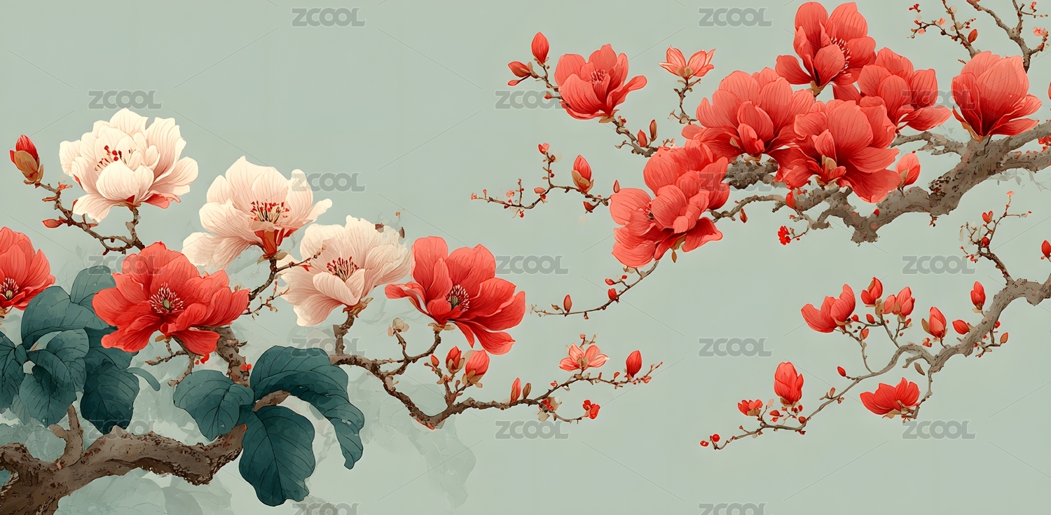 牡丹,国风,花卉,红色背景,白色,艺术,绘画,花瓣,绽放,喜庆
