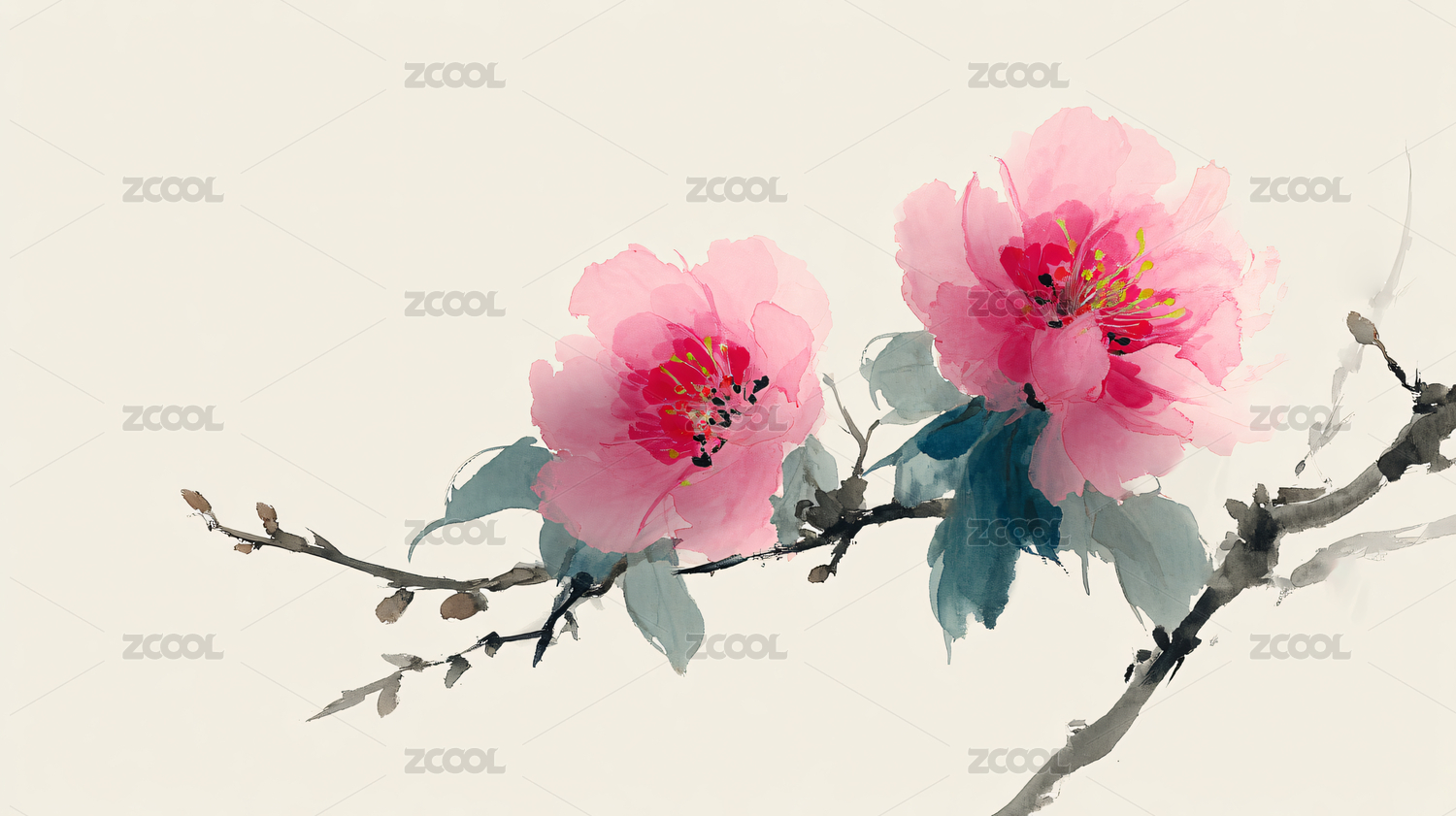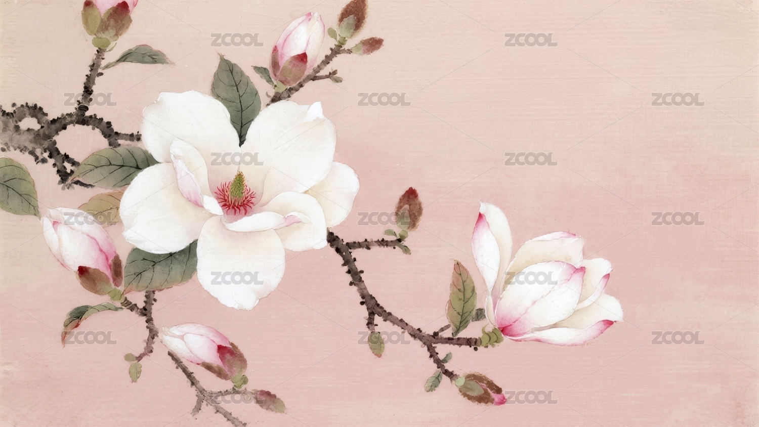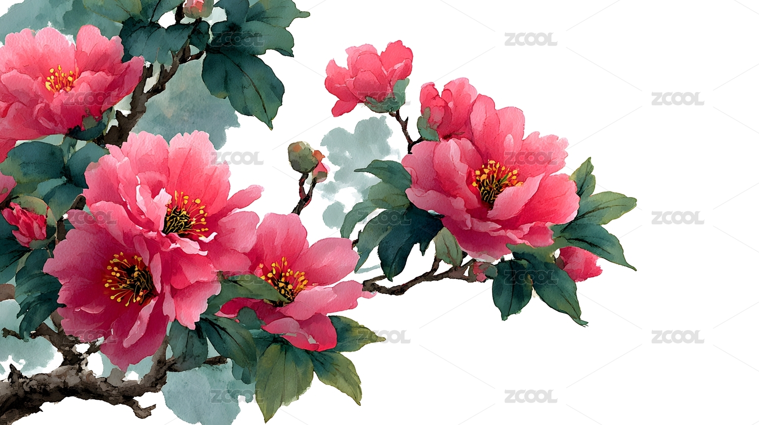 牡丹,国风,花卉,红色背景,白色,艺术,绘画,花瓣,绽放,喜庆