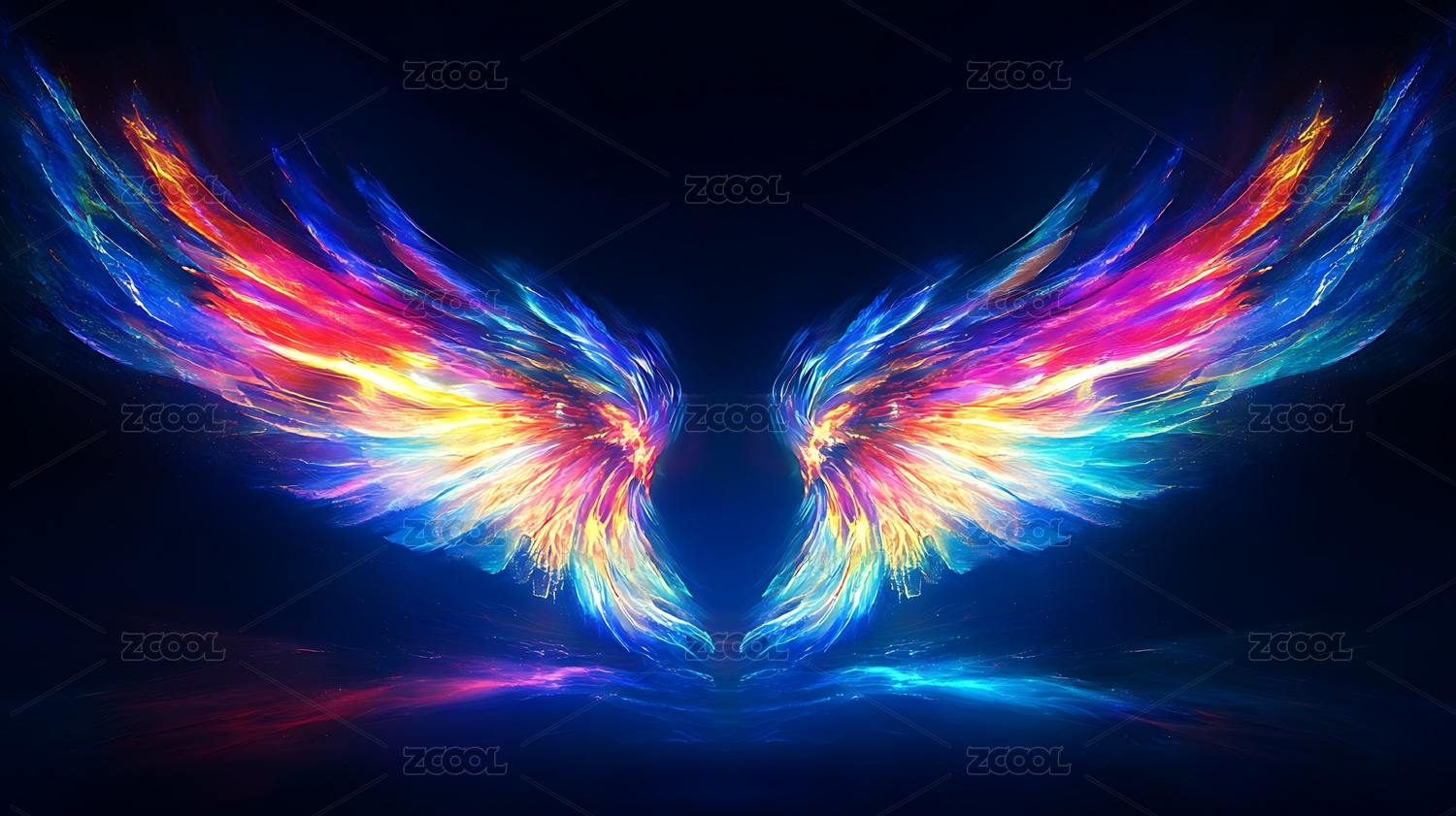 翅膀,发光,梦幻,炫彩,光影,背景,特效,科技感,星空,粒子