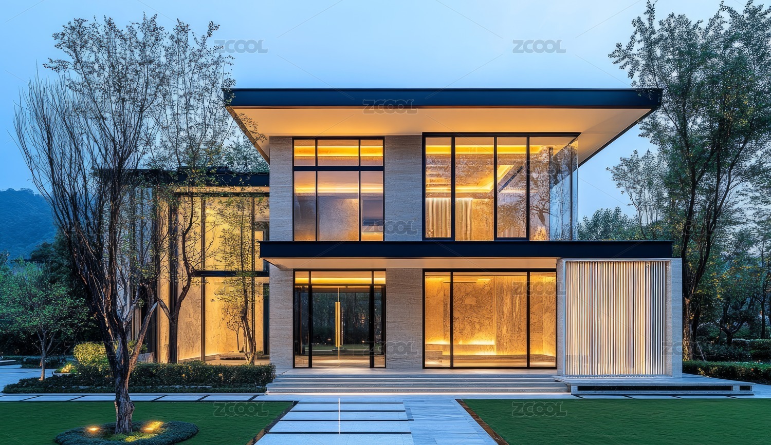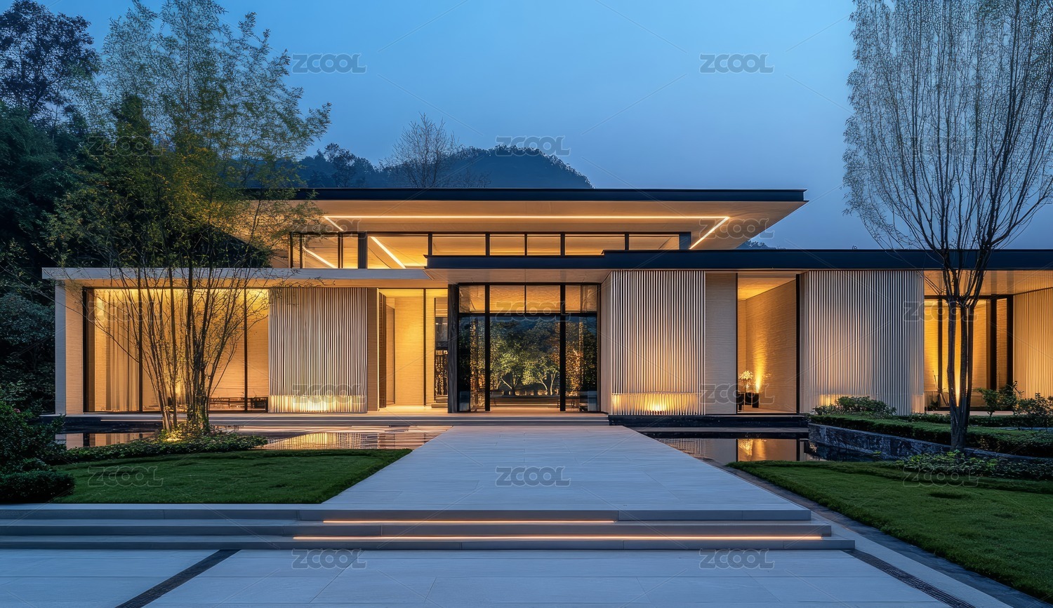 别墅,现代建筑,玻璃幕墙,黄昏,庭院,建筑外观,景观,住宅,房地产,户外