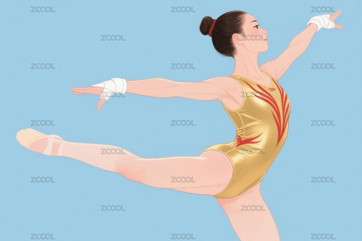 主视觉,商业,艺术,体操,柔美,场景,人物,彩带,动作,优雅