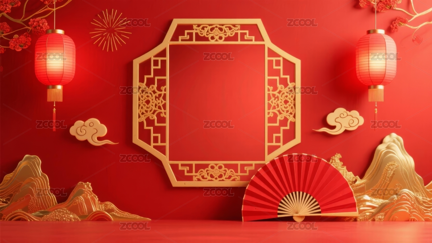 主视觉,商业,喜庆,场景,红色,传统,国风,背景,素材,设计